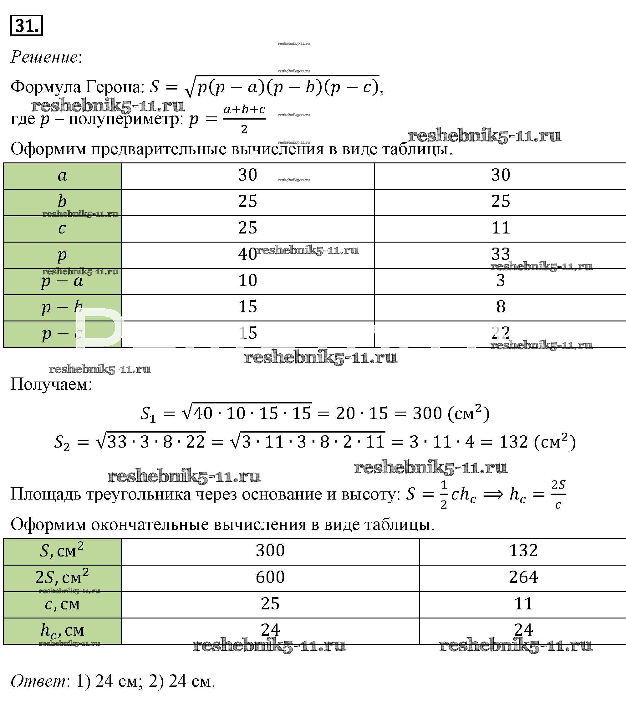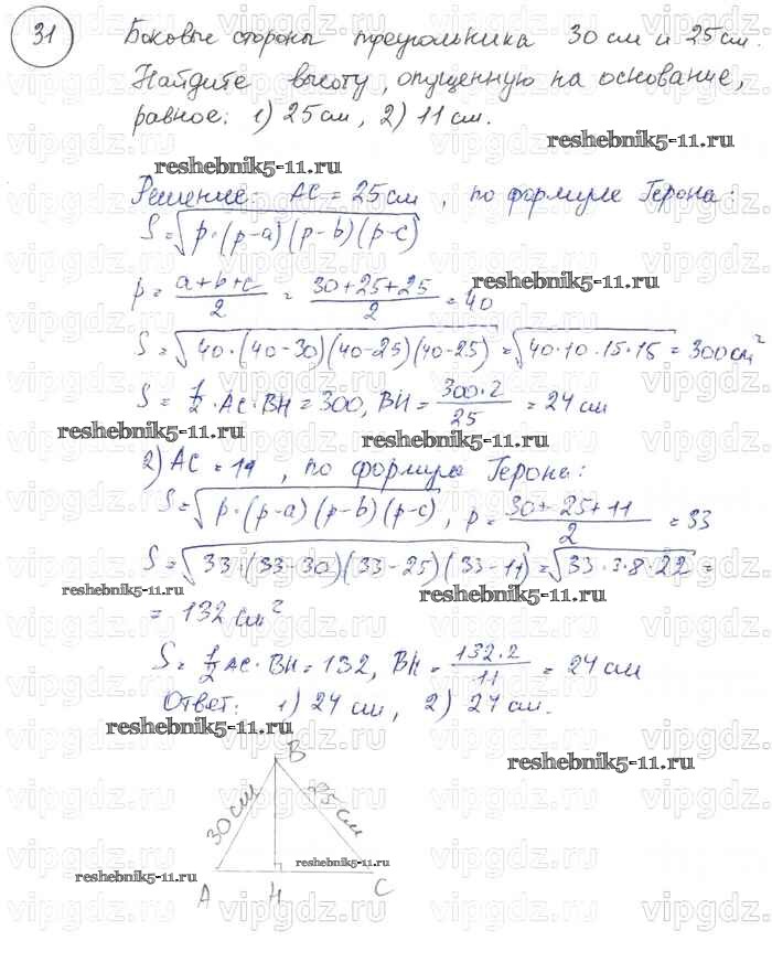 Готовая домашняя работа с ответами по Геометрии за 7, 8, 9 класс Погорелов Учебник Просвещение 2014 ФГОС - §14. Площади фигур 31