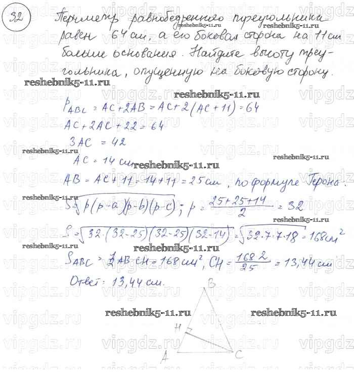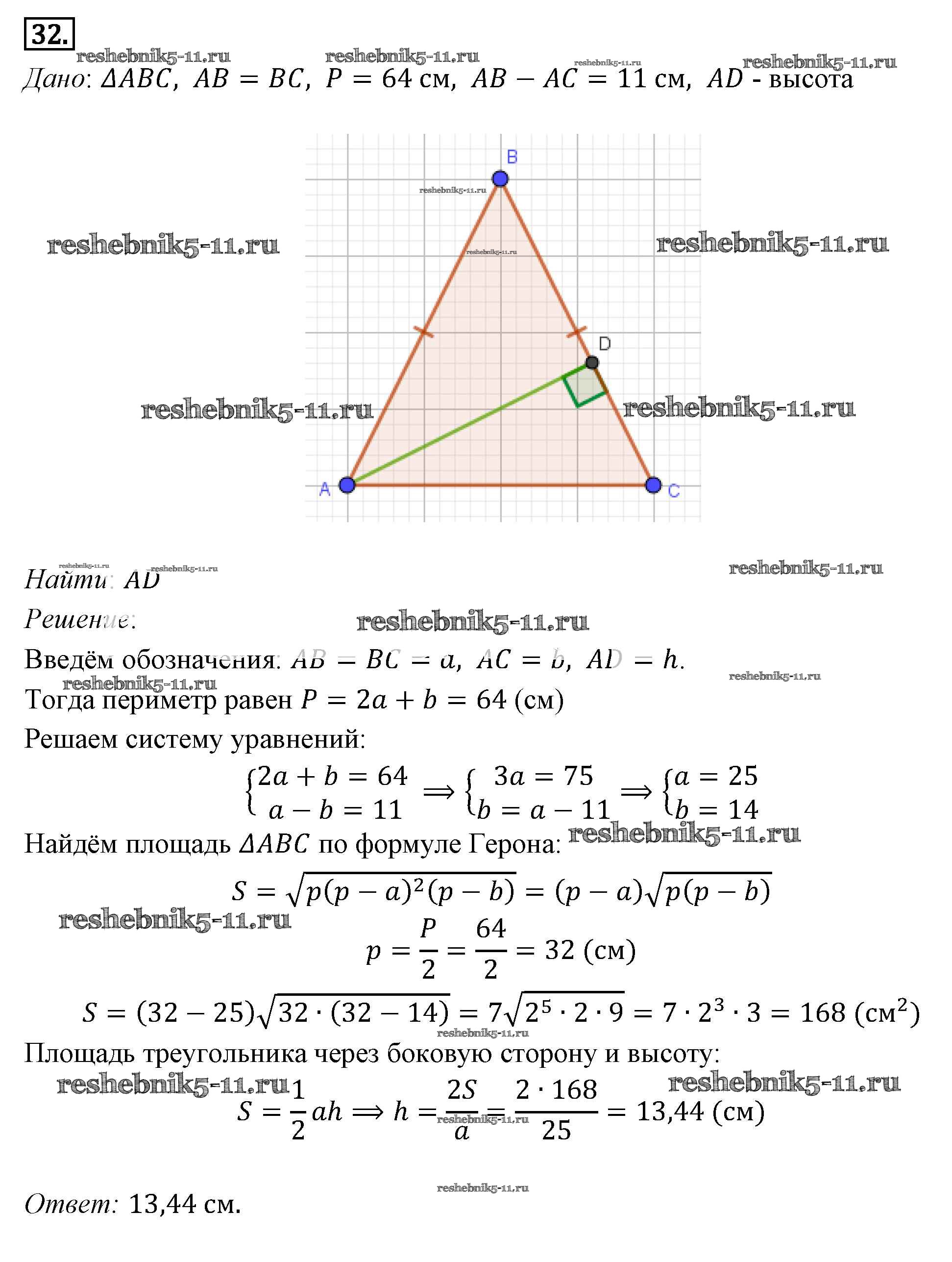 Готовая домашняя работа с ответами по Геометрии за 7, 8, 9 класс Погорелов Учебник Просвещение 2014 ФГОС - §14. Площади фигур 32