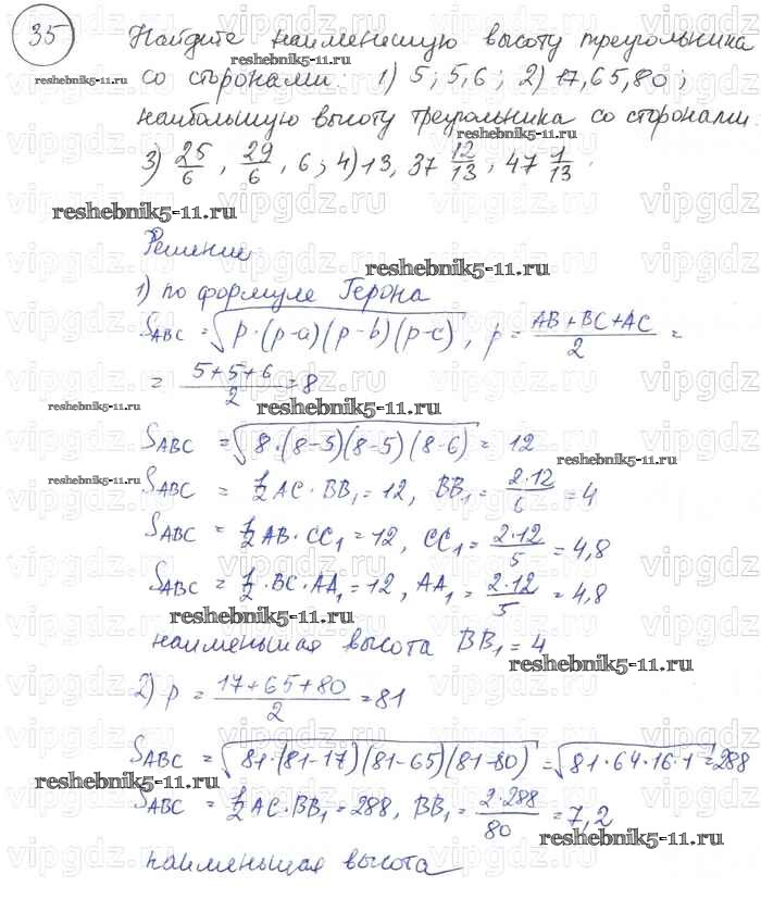Готовая домашняя работа с ответами по Геометрии за 7, 8, 9 класс Погорелов Учебник Просвещение 2014 ФГОС - §14. Площади фигур 35