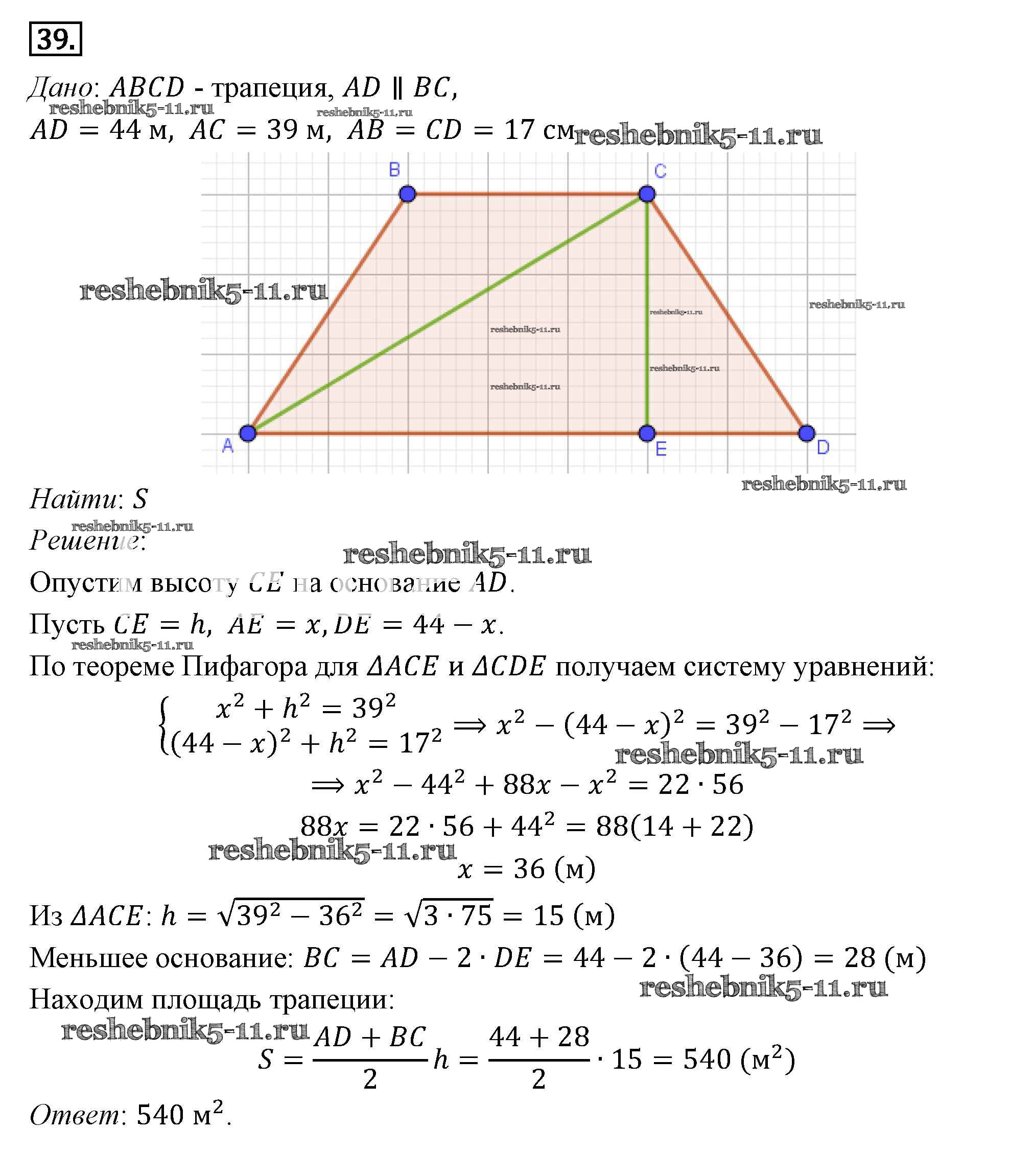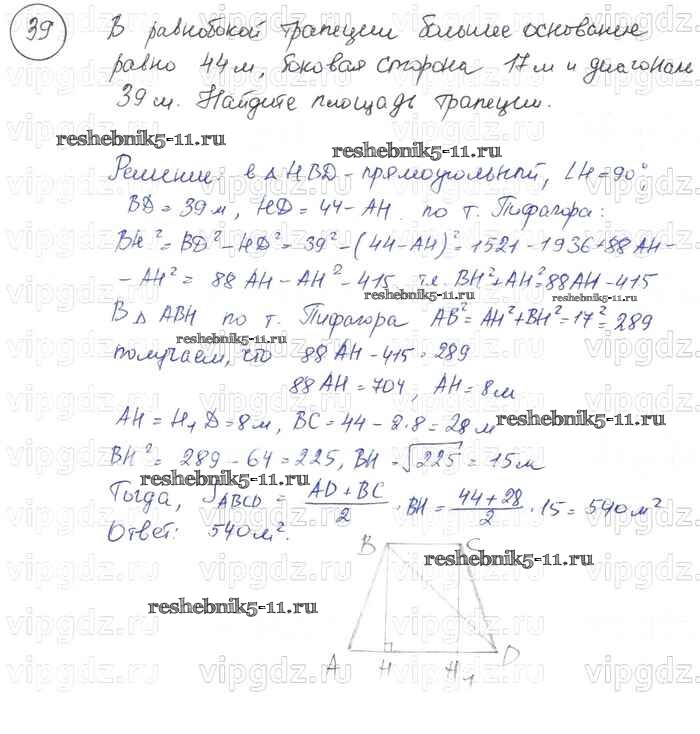 Готовая домашняя работа с ответами по Геометрии за 7, 8, 9 класс Погорелов Учебник Просвещение 2014 ФГОС - §14. Площади фигур 39