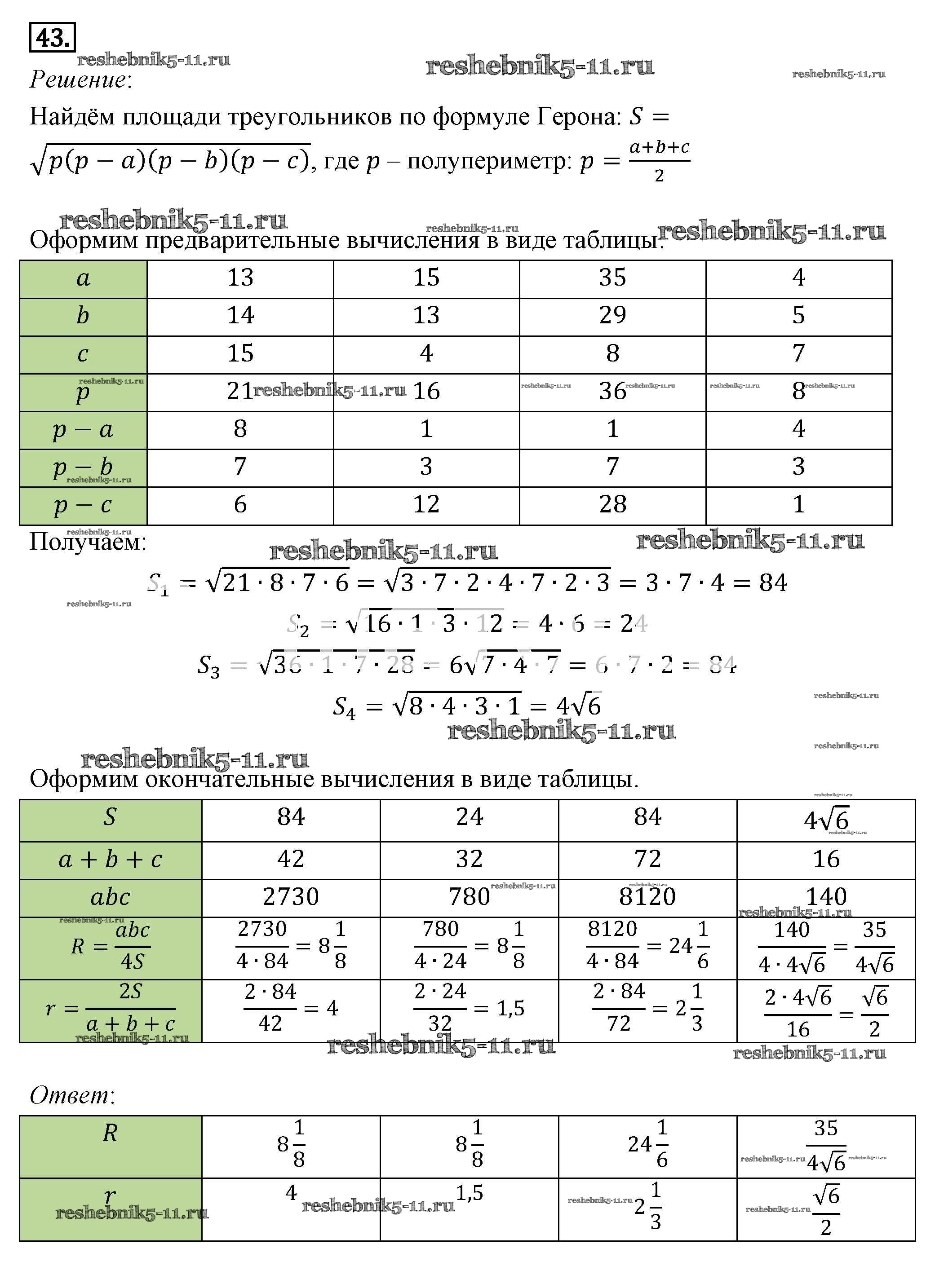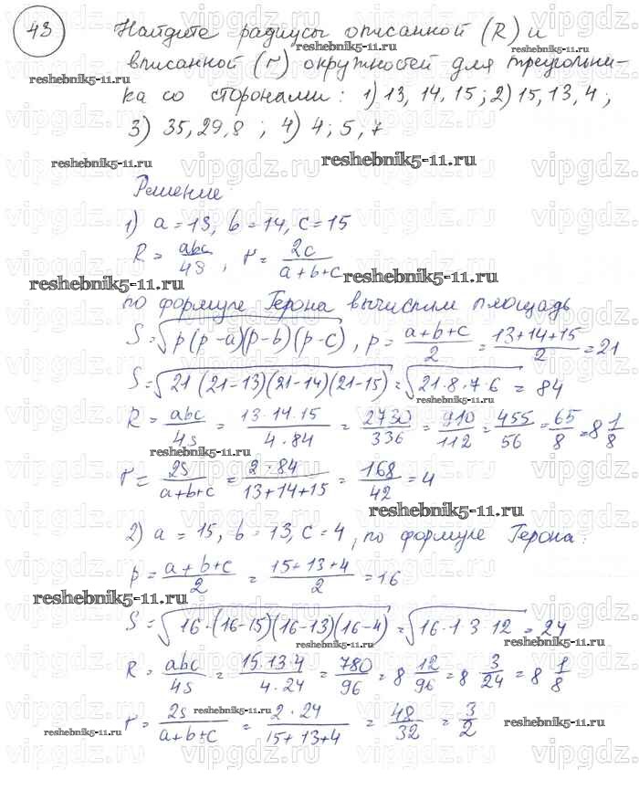 Готовая домашняя работа с ответами по Геометрии за 7, 8, 9 класс Погорелов Учебник Просвещение 2014 ФГОС - §14. Площади фигур 43