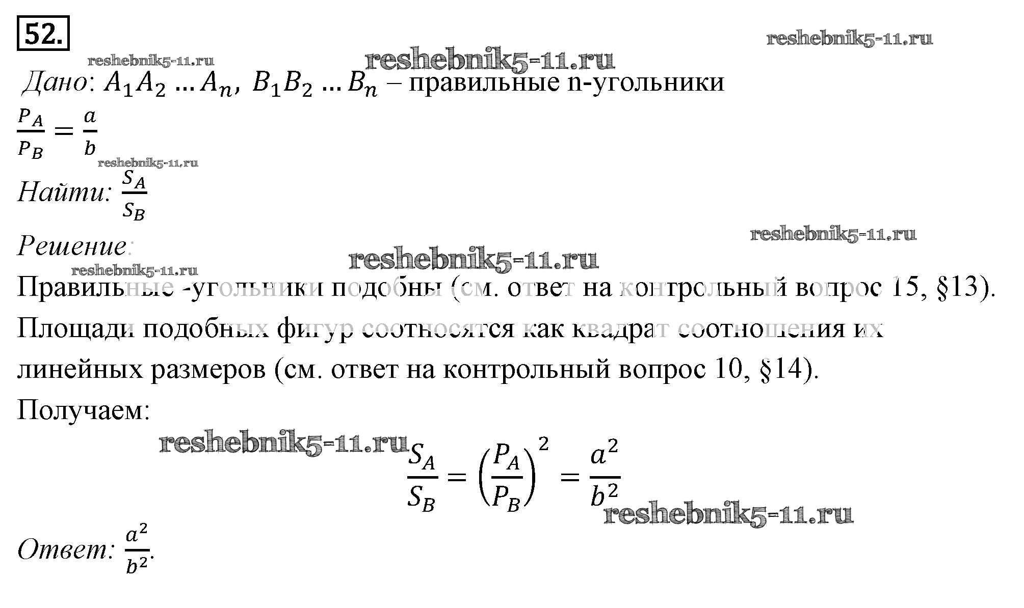 Готовая домашняя работа с ответами по Геометрии за 7, 8, 9 класс Погорелов Учебник Просвещение 2014 ФГОС - §14. Площади фигур 52