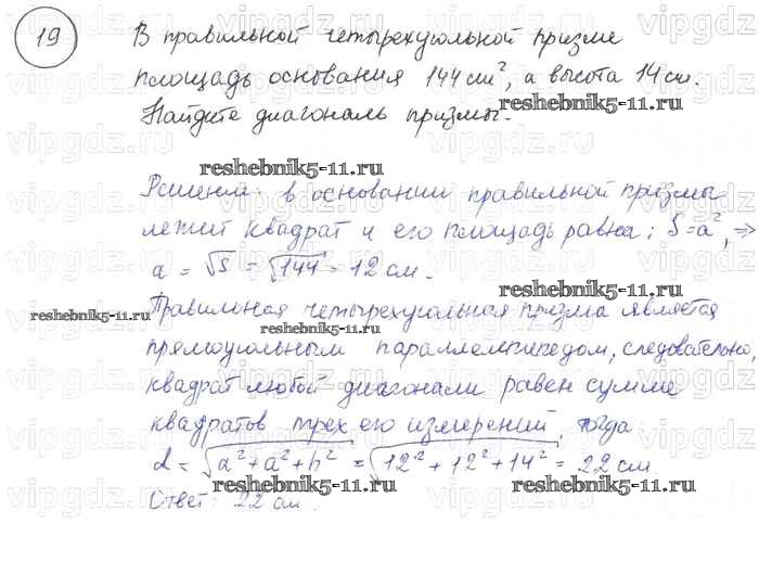Готовая домашняя работа с ответами по Геометрии за 7, 8, 9 класс Погорелов Учебник Просвещение 2014 ФГОС - §15. Элементы стереометрии 19