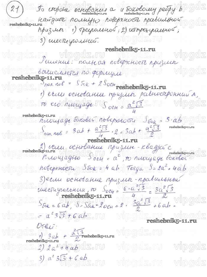 Готовая домашняя работа с ответами по Геометрии за 7, 8, 9 класс Погорелов Учебник Просвещение 2014 ФГОС - §15. Элементы стереометрии 21