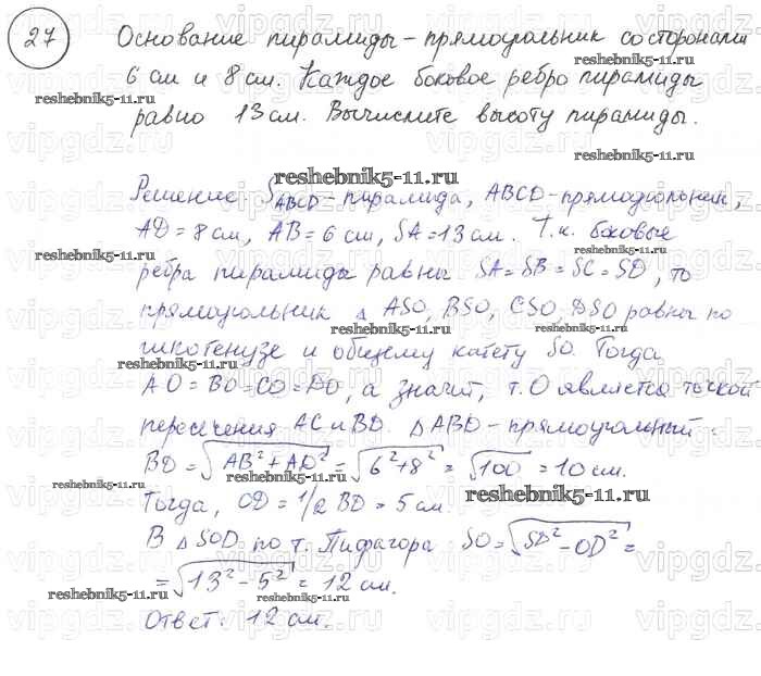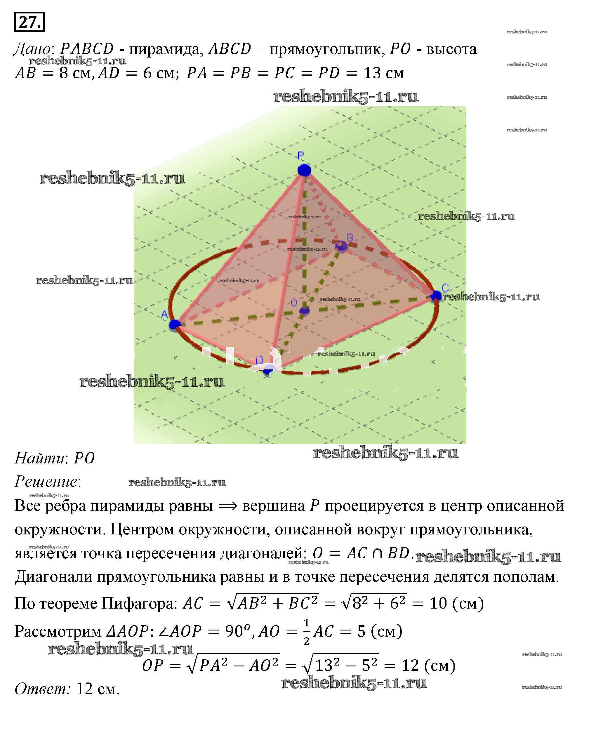 Готовая домашняя работа с ответами по Геометрии за 7, 8, 9 класс Погорелов Учебник Просвещение 2014 ФГОС - §15. Элементы стереометрии 27