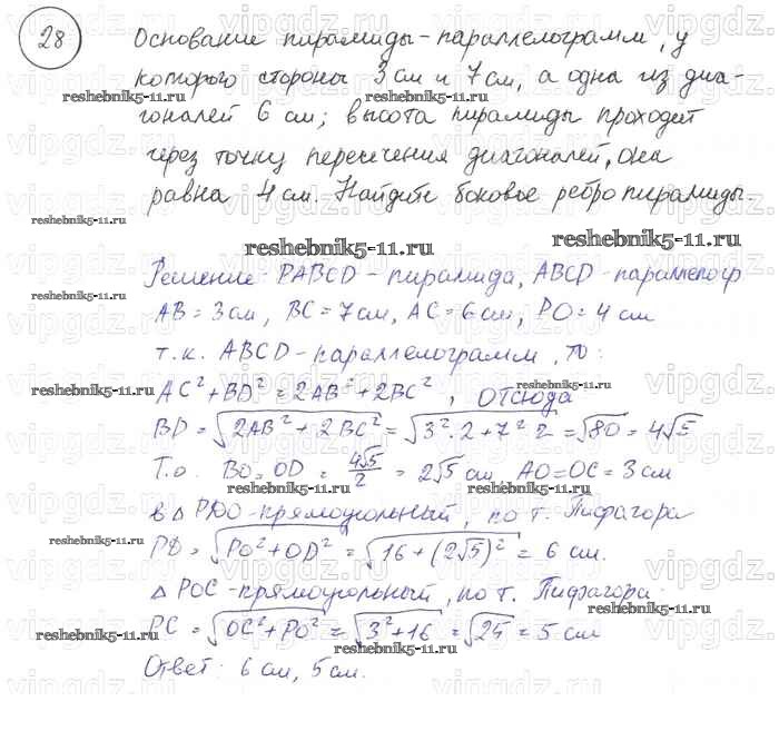 Готовая домашняя работа с ответами по Геометрии за 7, 8, 9 класс Погорелов Учебник Просвещение 2014 ФГОС - §15. Элементы стереометрии 28
