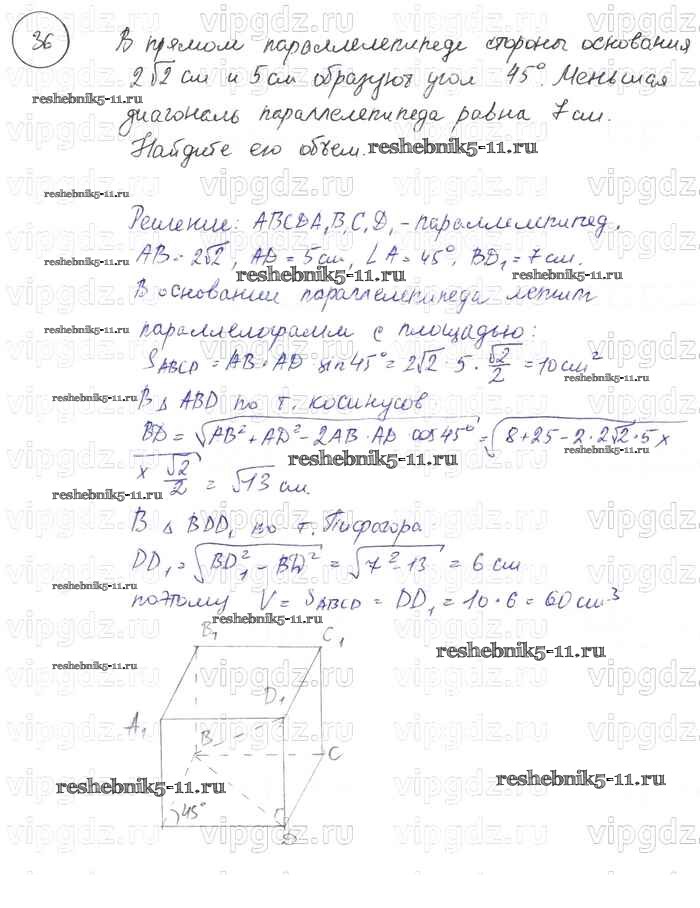 Готовая домашняя работа с ответами по Геометрии за 7, 8, 9 класс Погорелов Учебник Просвещение 2014 ФГОС - §15. Элементы стереометрии 36