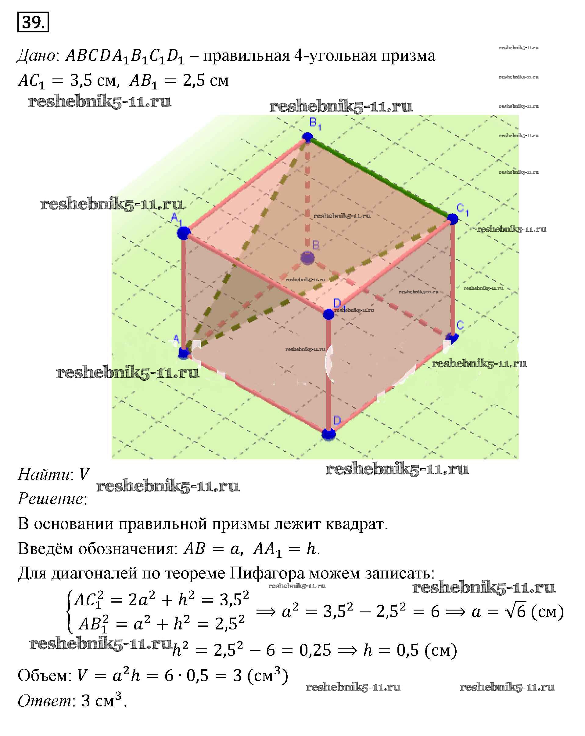 Готовая домашняя работа с ответами по Геометрии за 7, 8, 9 класс Погорелов Учебник Просвещение 2014 ФГОС - §15. Элементы стереометрии 39