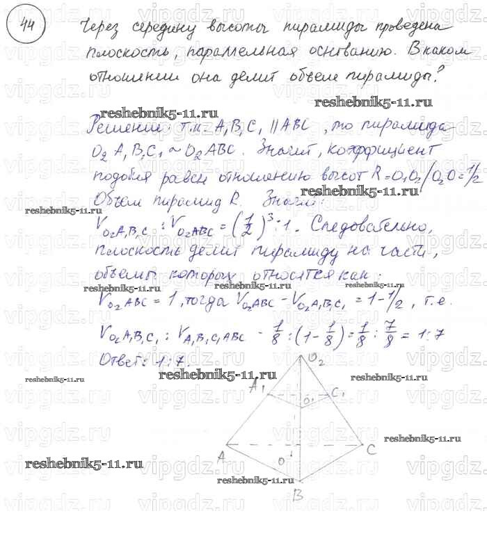 Готовая домашняя работа с ответами по Геометрии за 7, 8, 9 класс Погорелов Учебник Просвещение 2014 ФГОС - §15. Элементы стереометрии 44