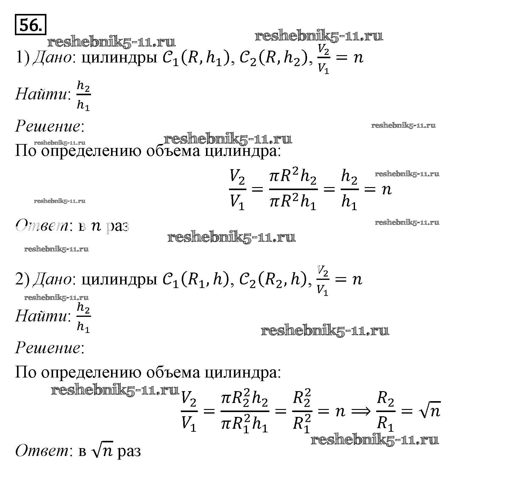 Готовая домашняя работа с ответами по Геометрии за 7, 8, 9 класс Погорелов Учебник Просвещение 2014 ФГОС - §15. Элементы стереометрии 56