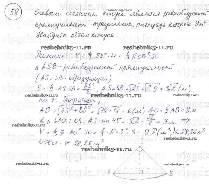 Готовая домашняя работа с ответами по Геометрии за 7, 8, 9 класс Погорелов Учебник Просвещение 2014 ФГОС - §15. Элементы стереометрии 58