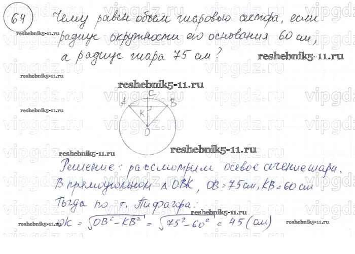 Готовая домашняя работа с ответами по Геометрии за 7, 8, 9 класс Погорелов Учебник Просвещение 2014 ФГОС - §15. Элементы стереометрии 64