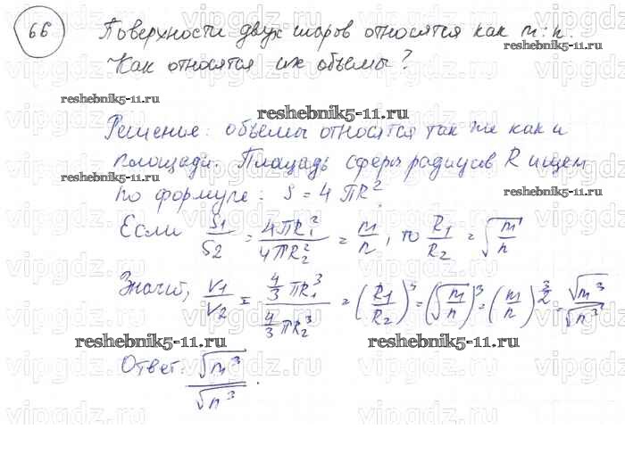 Готовая домашняя работа с ответами по Геометрии за 7, 8, 9 класс Погорелов Учебник Просвещение 2014 ФГОС - §15. Элементы стереометрии 66