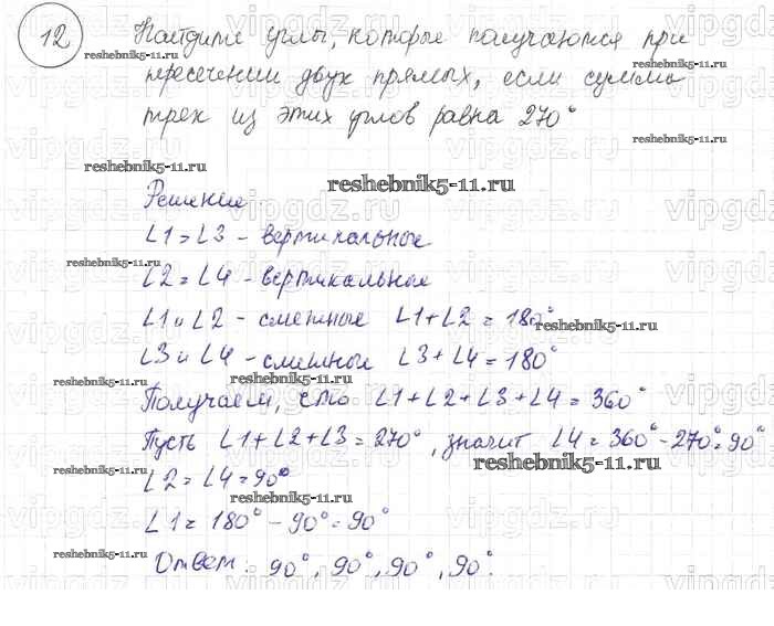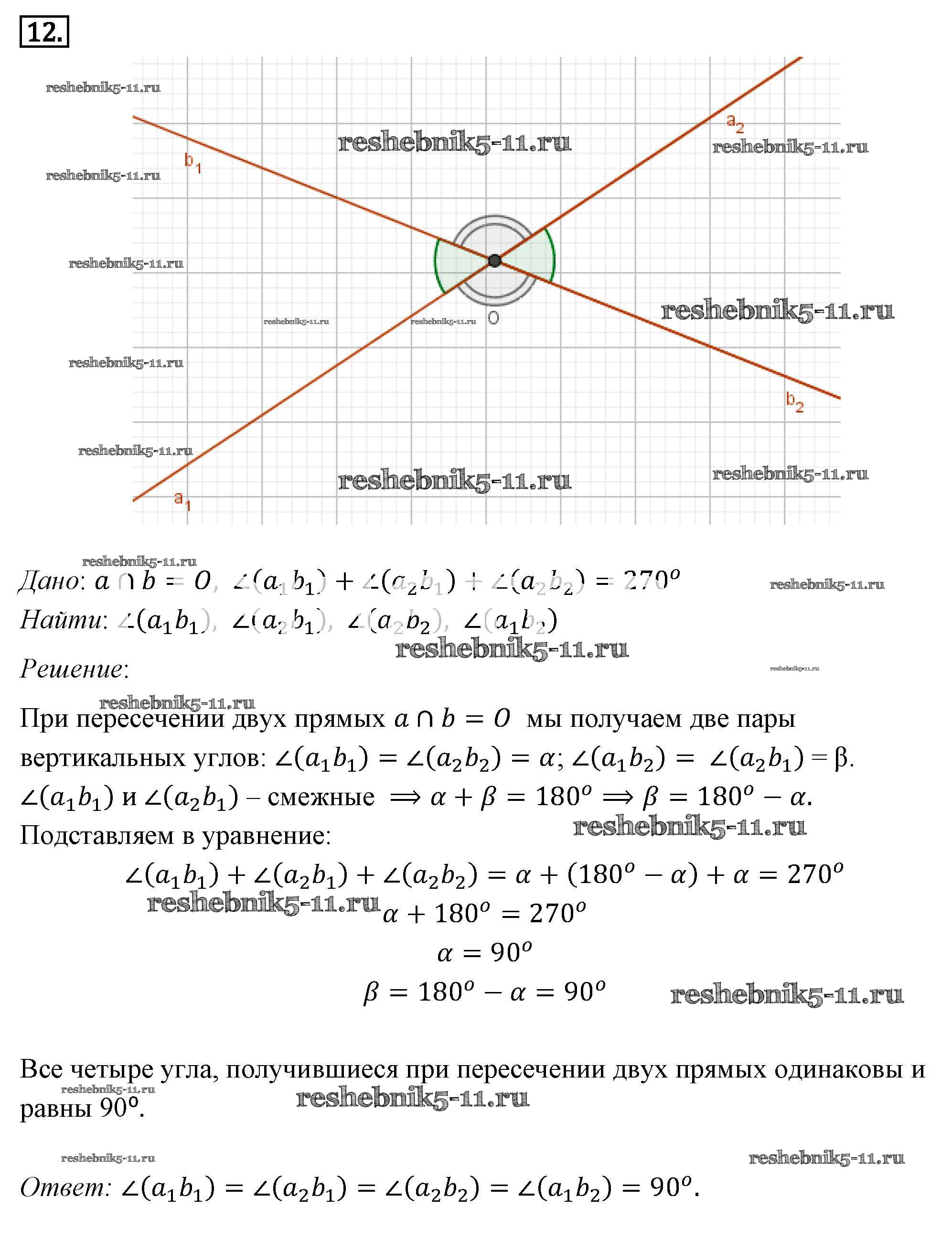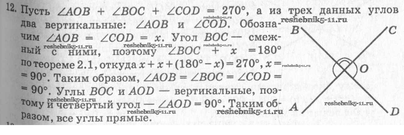 Готовая домашняя работа с ответами по Геометрии за 7, 8, 9 класс Погорелов Учебник Просвещение 2014 ФГОС - §2. Смежные и вертикальные углы 12