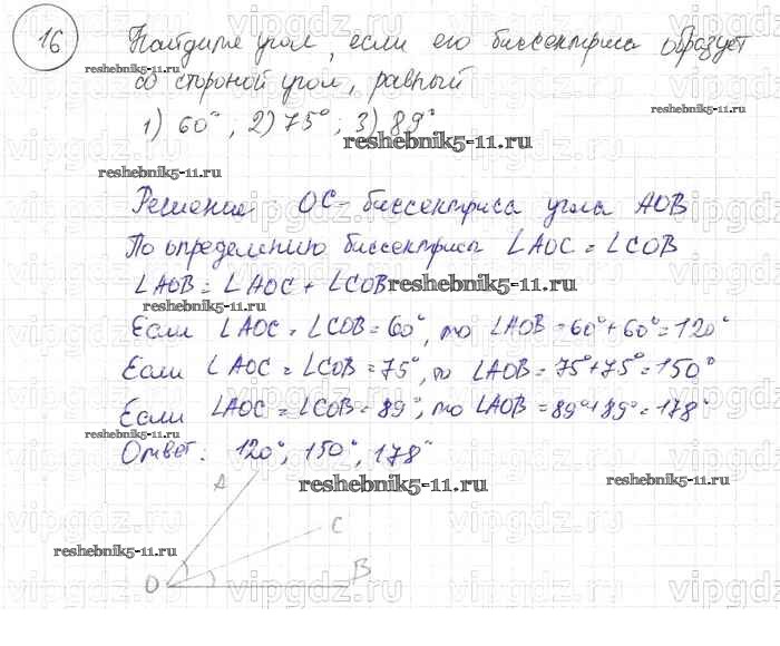 Готовая домашняя работа с ответами по Геометрии за 7, 8, 9 класс Погорелов Учебник Просвещение 2014 ФГОС - §2. Смежные и вертикальные углы 16