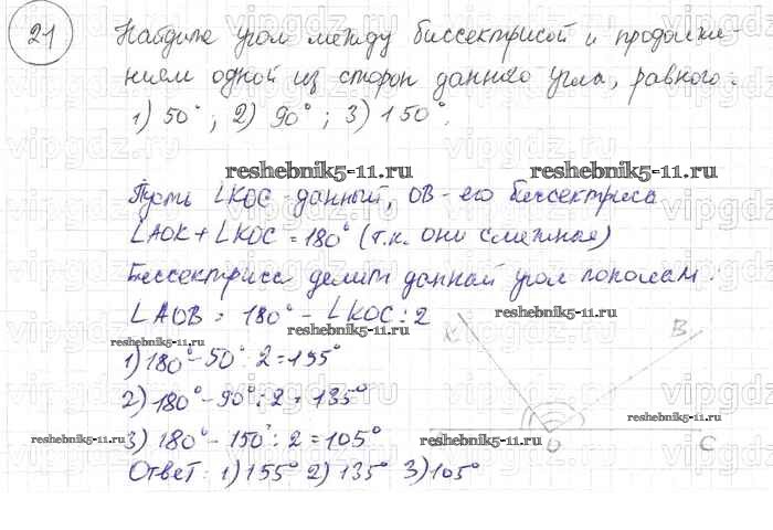 Готовая домашняя работа с ответами по Геометрии за 7, 8, 9 класс Погорелов Учебник Просвещение 2014 ФГОС - §2. Смежные и вертикальные углы 21