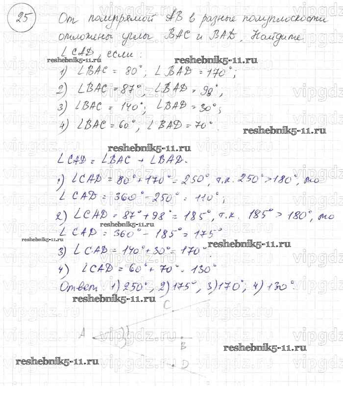 Готовая домашняя работа с ответами по Геометрии за 7, 8, 9 класс Погорелов Учебник Просвещение 2014 ФГОС - §2. Смежные и вертикальные углы 25