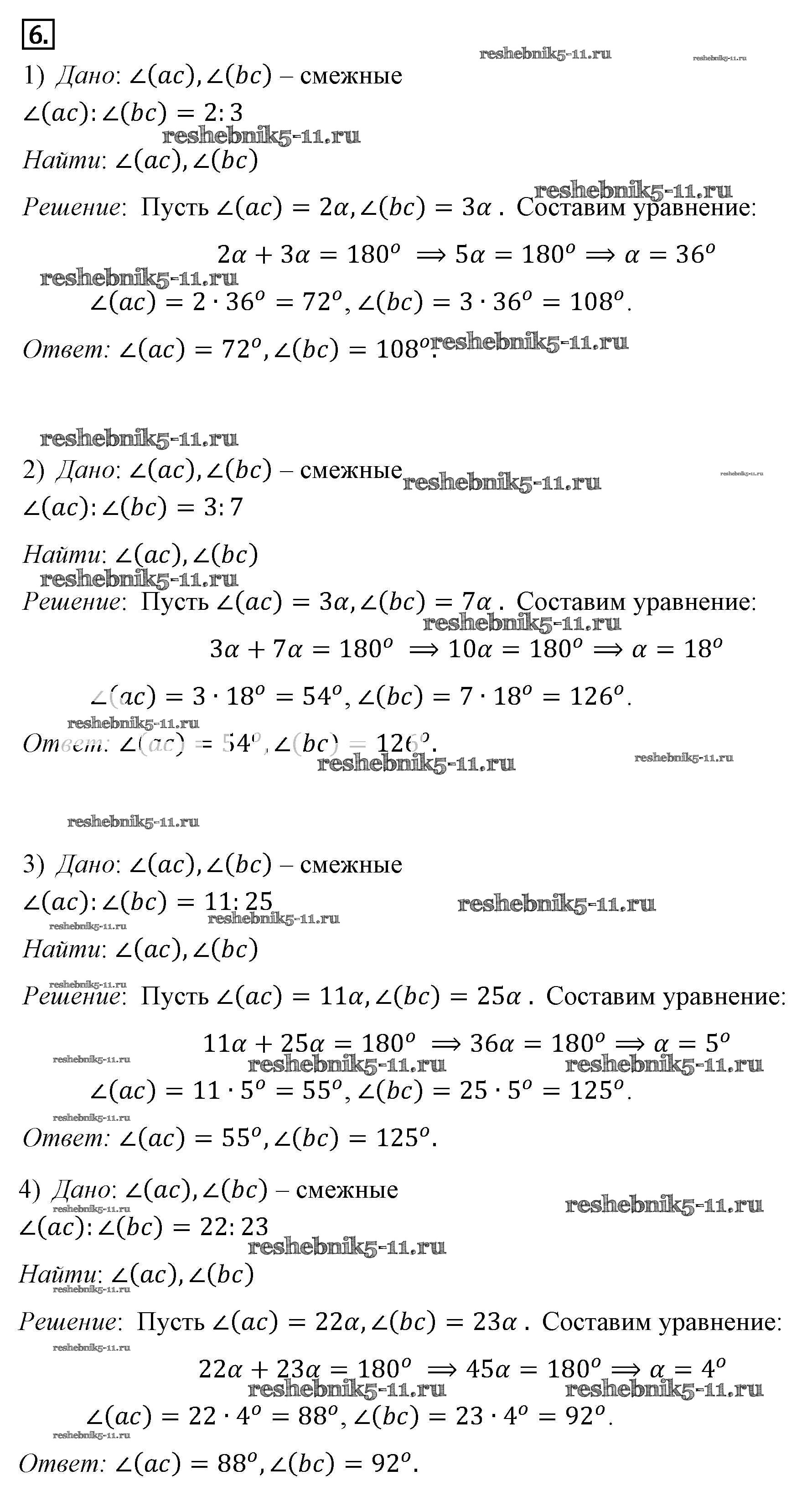 Готовая домашняя работа с ответами по Геометрии за 7, 8, 9 класс Погорелов Учебник Просвещение 2014 ФГОС - §2. Смежные и вертикальные углы 6