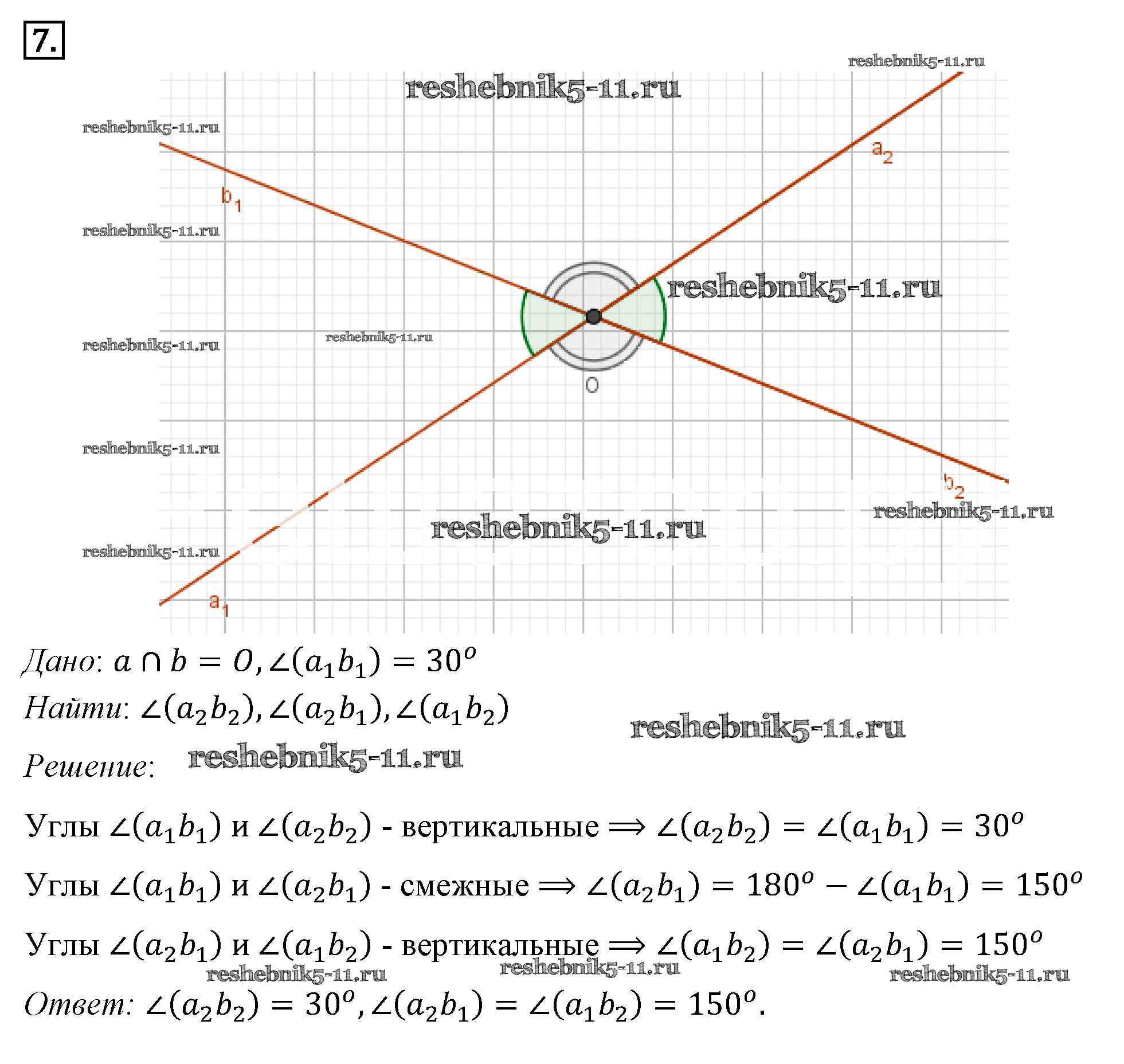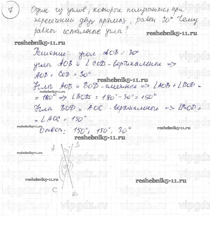 Готовая домашняя работа с ответами по Геометрии за 7, 8, 9 класс Погорелов Учебник Просвещение 2014 ФГОС - §2. Смежные и вертикальные углы 7