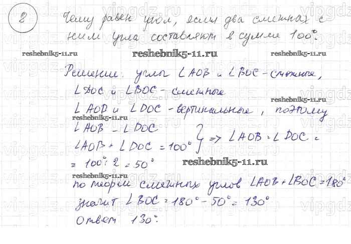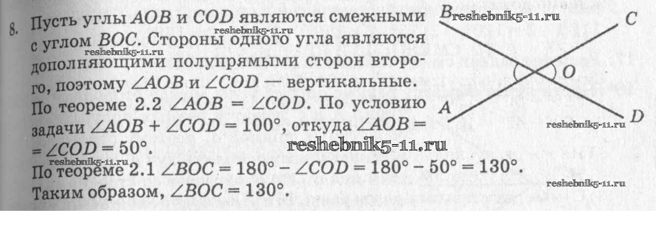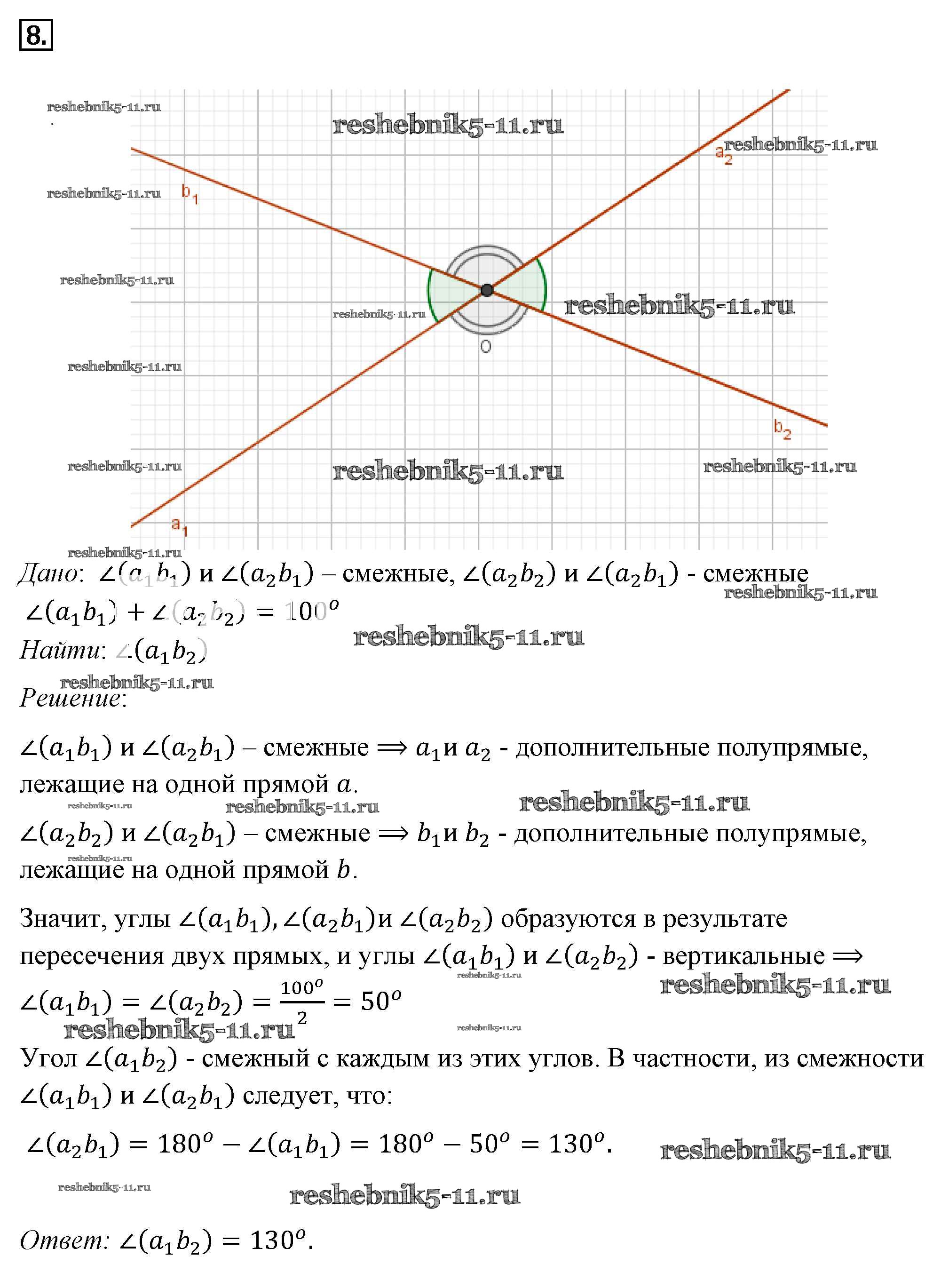 Готовая домашняя работа с ответами по Геометрии за 7, 8, 9 класс Погорелов Учебник Просвещение 2014 ФГОС - §2. Смежные и вертикальные углы 8