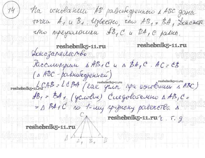 Готовая домашняя работа с ответами по Геометрии за 7, 8, 9 класс Погорелов Учебник Просвещение 2014 ФГОС - §3. Признаки равенства треугольников 14