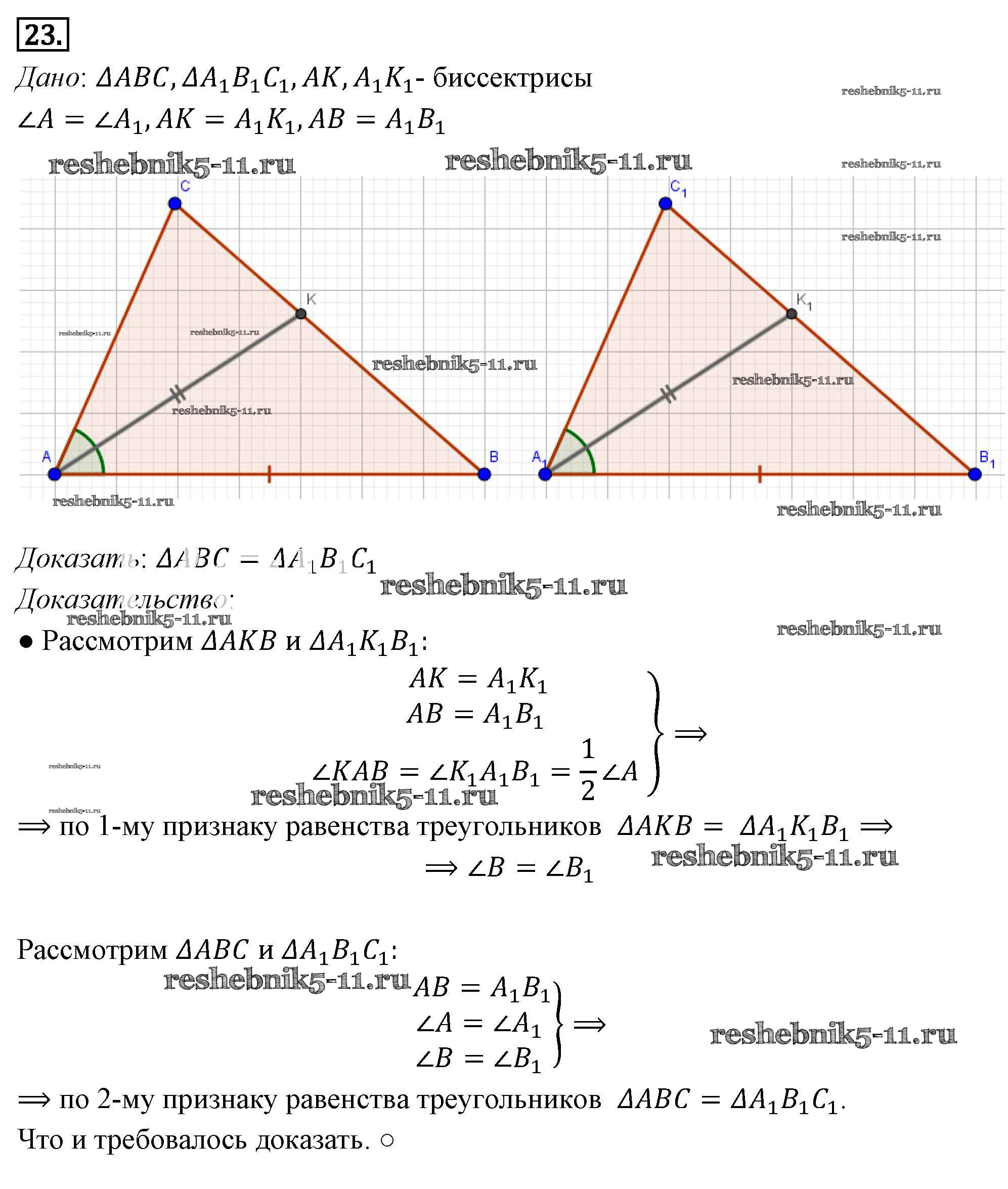Готовая домашняя работа с ответами по Геометрии за 7, 8, 9 класс Погорелов Учебник Просвещение 2014 ФГОС - §3. Признаки равенства треугольников 23