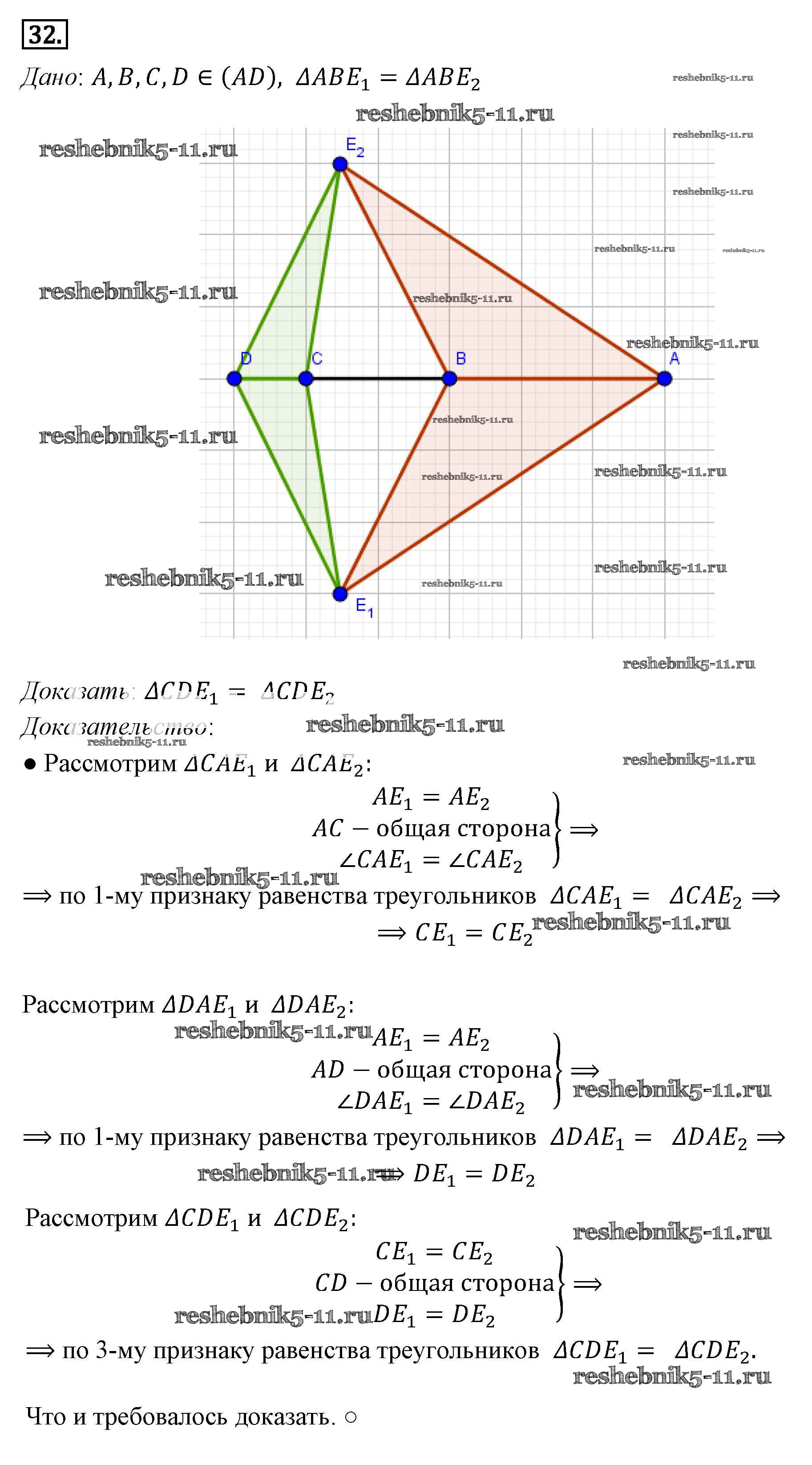 Готовая домашняя работа с ответами по Геометрии за 7, 8, 9 класс Погорелов Учебник Просвещение 2014 ФГОС - §3. Признаки равенства треугольников 32