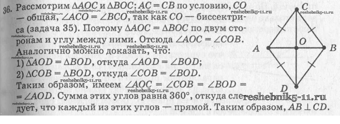 Готовая домашняя работа с ответами по Геометрии за 7, 8, 9 класс Погорелов Учебник Просвещение 2014 ФГОС - §3. Признаки равенства треугольников 36