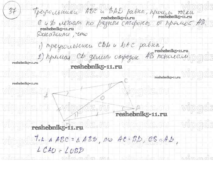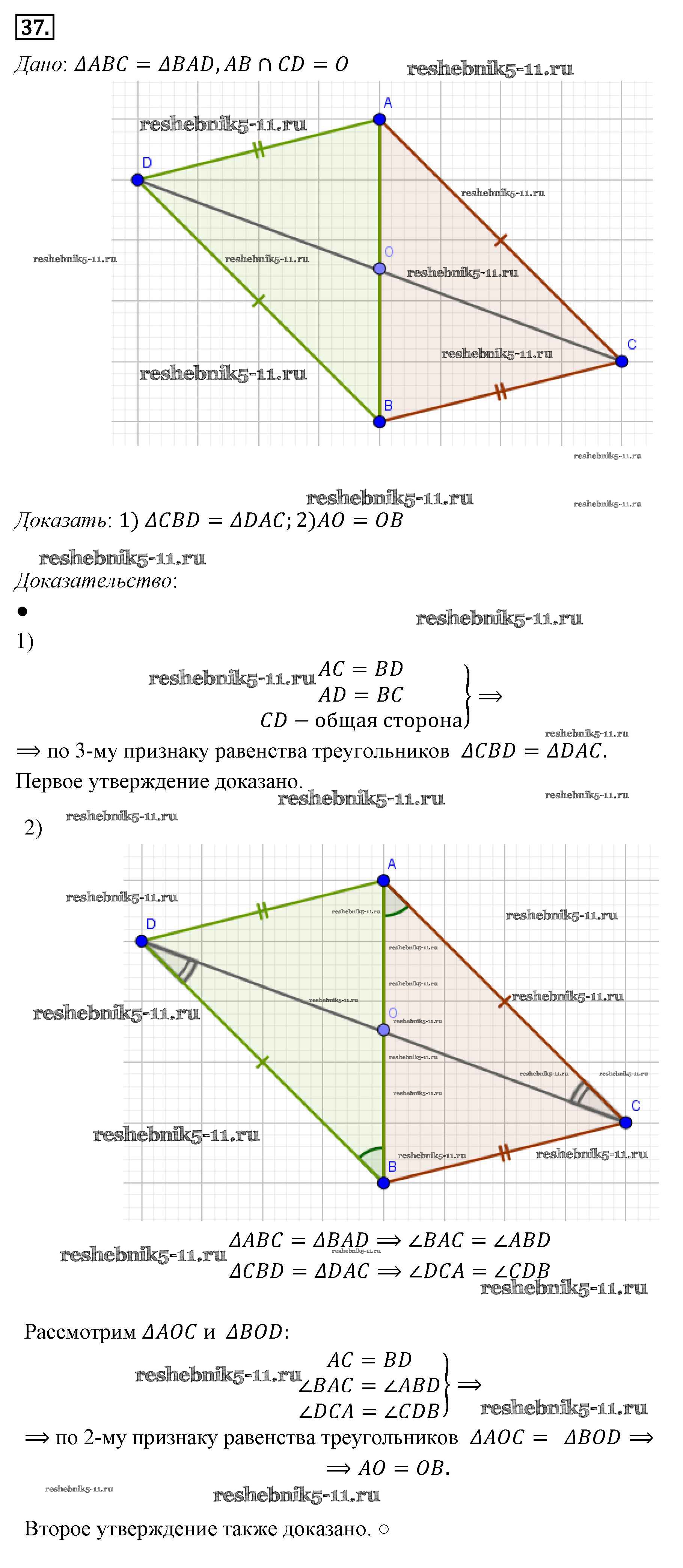 Готовая домашняя работа с ответами по Геометрии за 7, 8, 9 класс Погорелов Учебник Просвещение 2014 ФГОС - §3. Признаки равенства треугольников 37