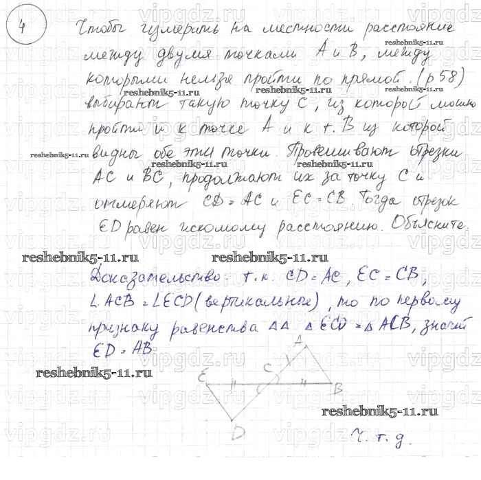 Готовая домашняя работа с ответами по Геометрии за 7, 8, 9 класс Погорелов Учебник Просвещение 2014 ФГОС - §3. Признаки равенства треугольников 4