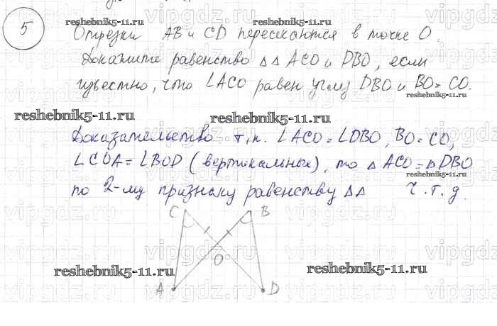 Готовая домашняя работа с ответами по Геометрии за 7, 8, 9 класс Погорелов Учебник Просвещение 2014 ФГОС - §3. Признаки равенства треугольников 5