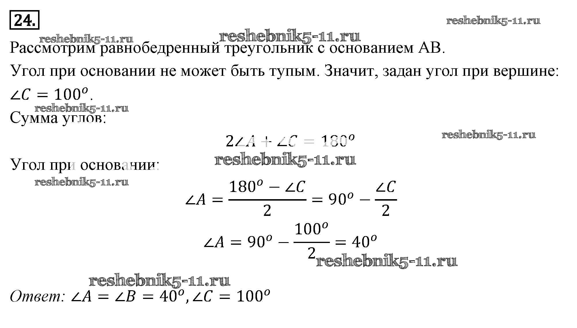 Готовая домашняя работа с ответами по Геометрии за 7, 8, 9 класс Погорелов Учебник Просвещение 2014 ФГОС - §4. Сумма углов треугольника 24