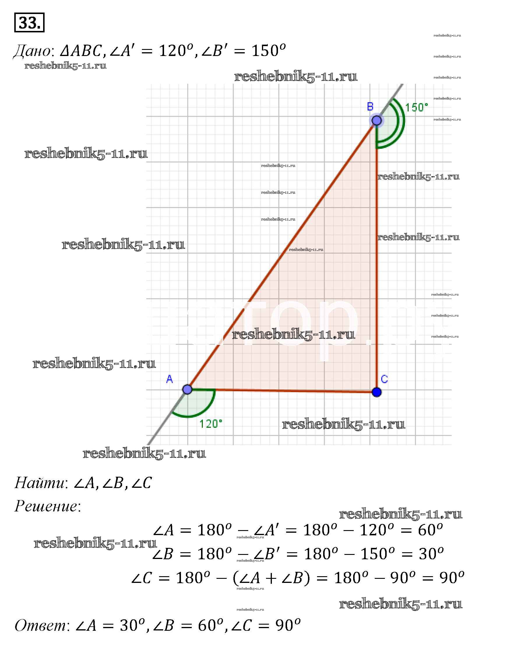 Готовая домашняя работа с ответами по Геометрии за 7, 8, 9 класс Погорелов Учебник Просвещение 2014 ФГОС - §4. Сумма углов треугольника 33
