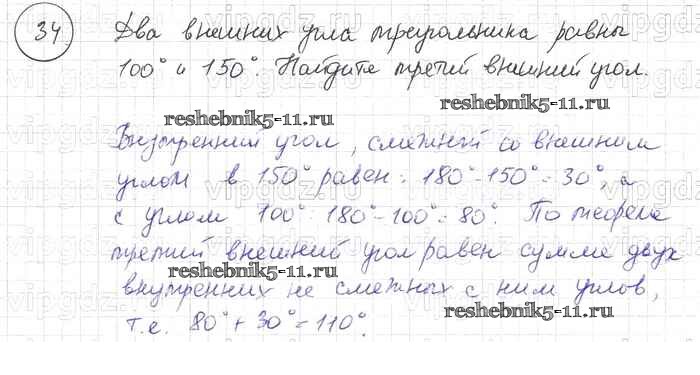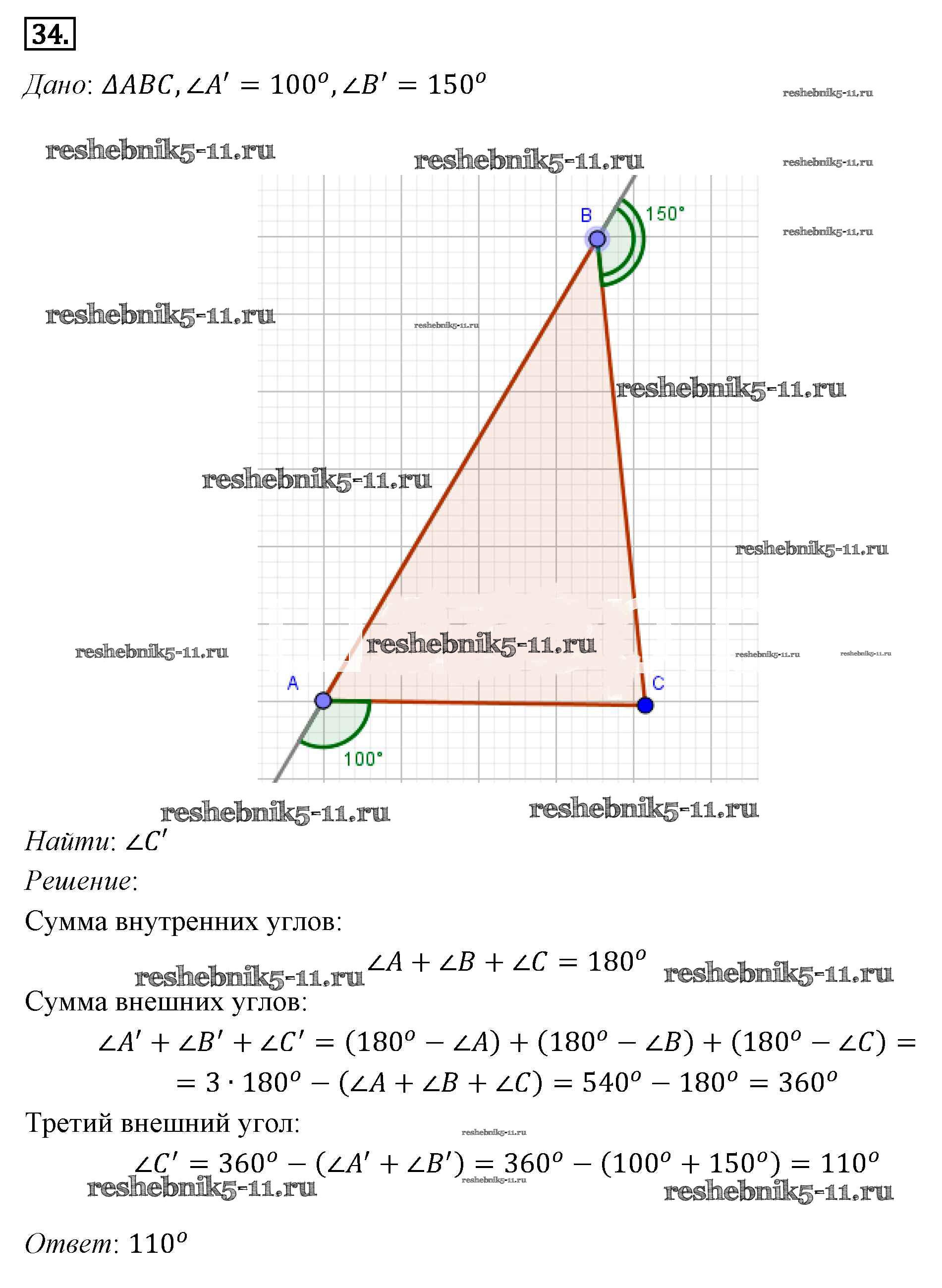 Готовая домашняя работа с ответами по Геометрии за 7, 8, 9 класс Погорелов Учебник Просвещение 2014 ФГОС - §4. Сумма углов треугольника 34