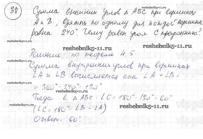 Готовая домашняя работа с ответами по Геометрии за 7, 8, 9 класс Погорелов Учебник Просвещение 2014 ФГОС - §4. Сумма углов треугольника 38
