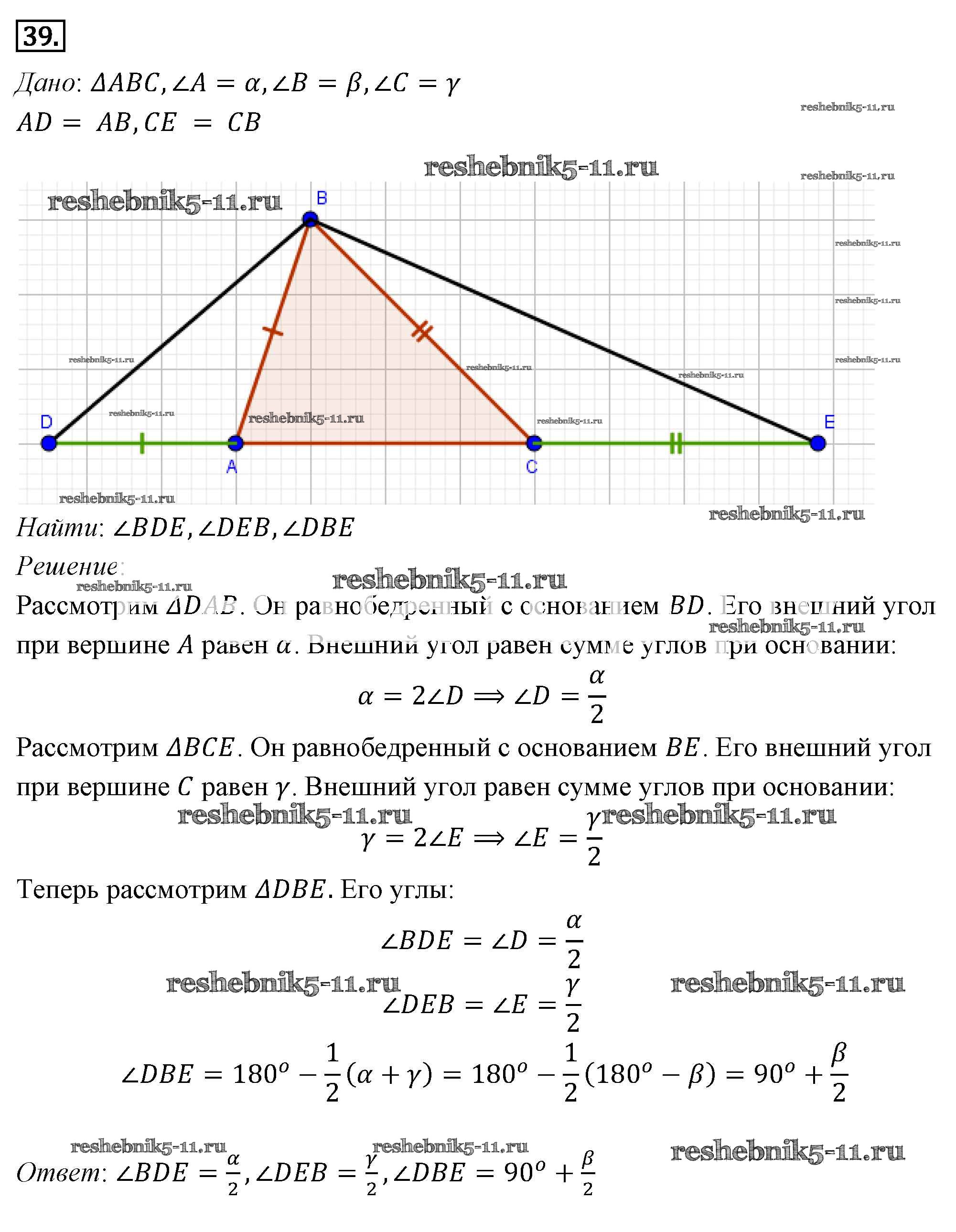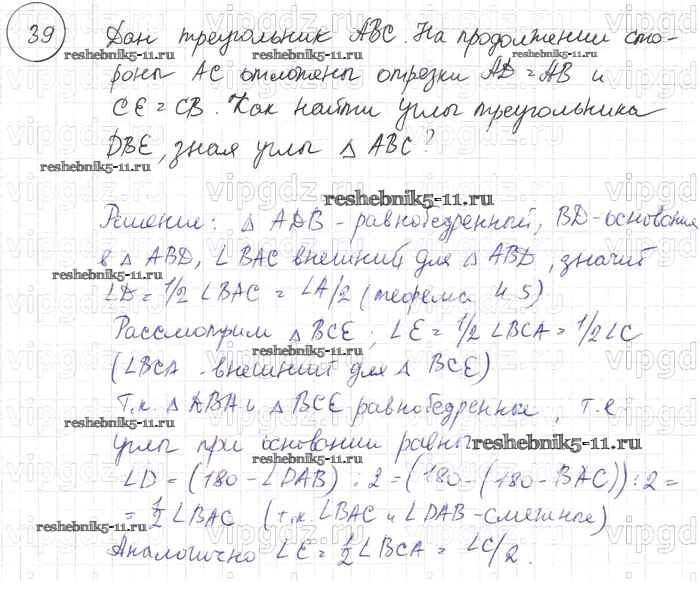 Готовая домашняя работа с ответами по Геометрии за 7, 8, 9 класс Погорелов Учебник Просвещение 2014 ФГОС - §4. Сумма углов треугольника 39
