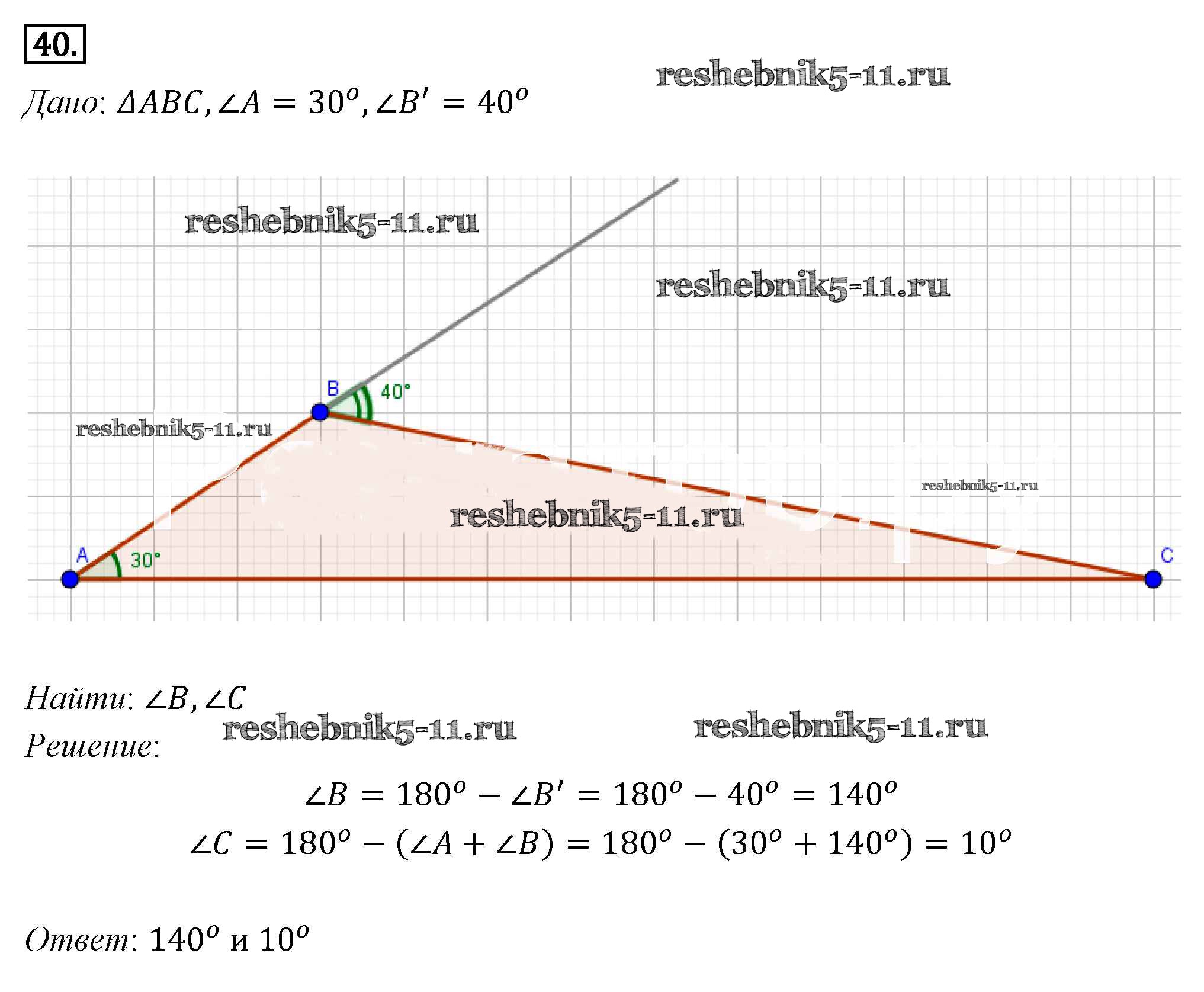 Готовая домашняя работа с ответами по Геометрии за 7, 8, 9 класс Погорелов Учебник Просвещение 2014 ФГОС - §4. Сумма углов треугольника 40