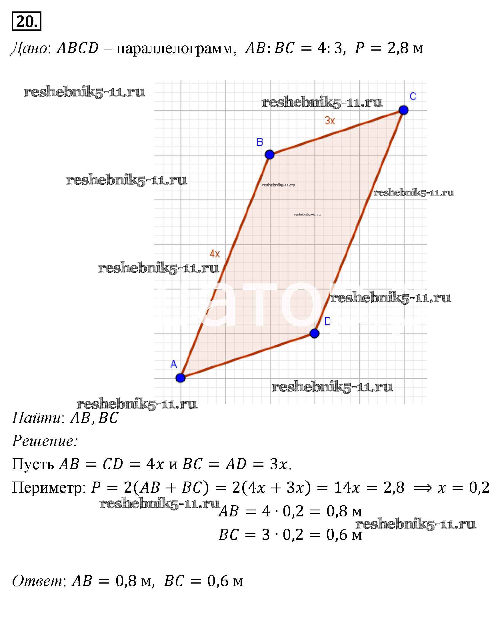 Готовая домашняя работа с ответами по Геометрии за 7, 8, 9 класс Погорелов Учебник Просвещение 2014 ФГОС - §6. Четырёхугольники 20
