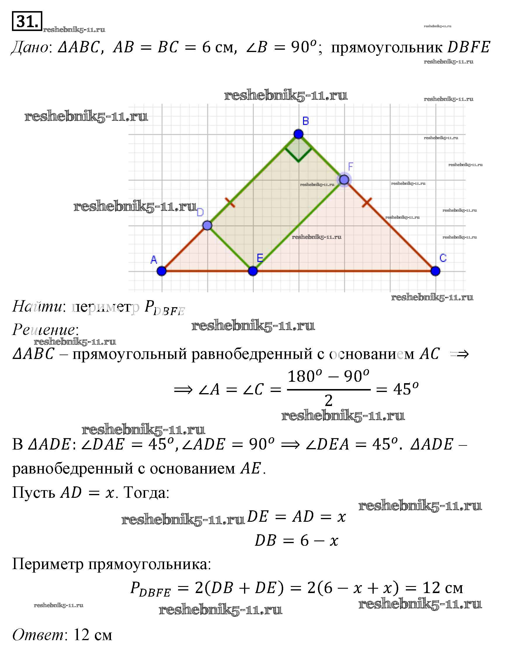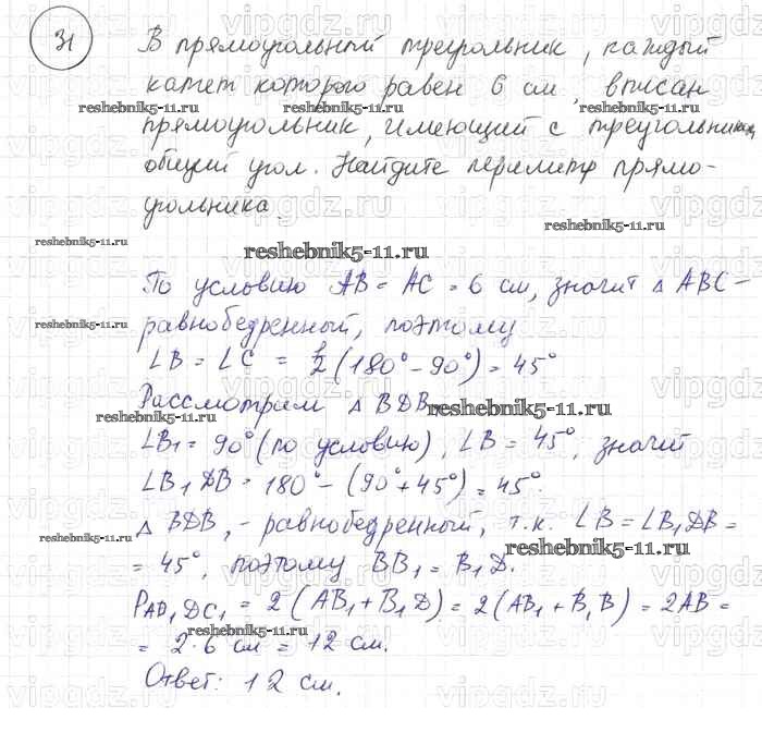 Готовая домашняя работа с ответами по Геометрии за 7, 8, 9 класс Погорелов Учебник Просвещение 2014 ФГОС - §6. Четырёхугольники 31