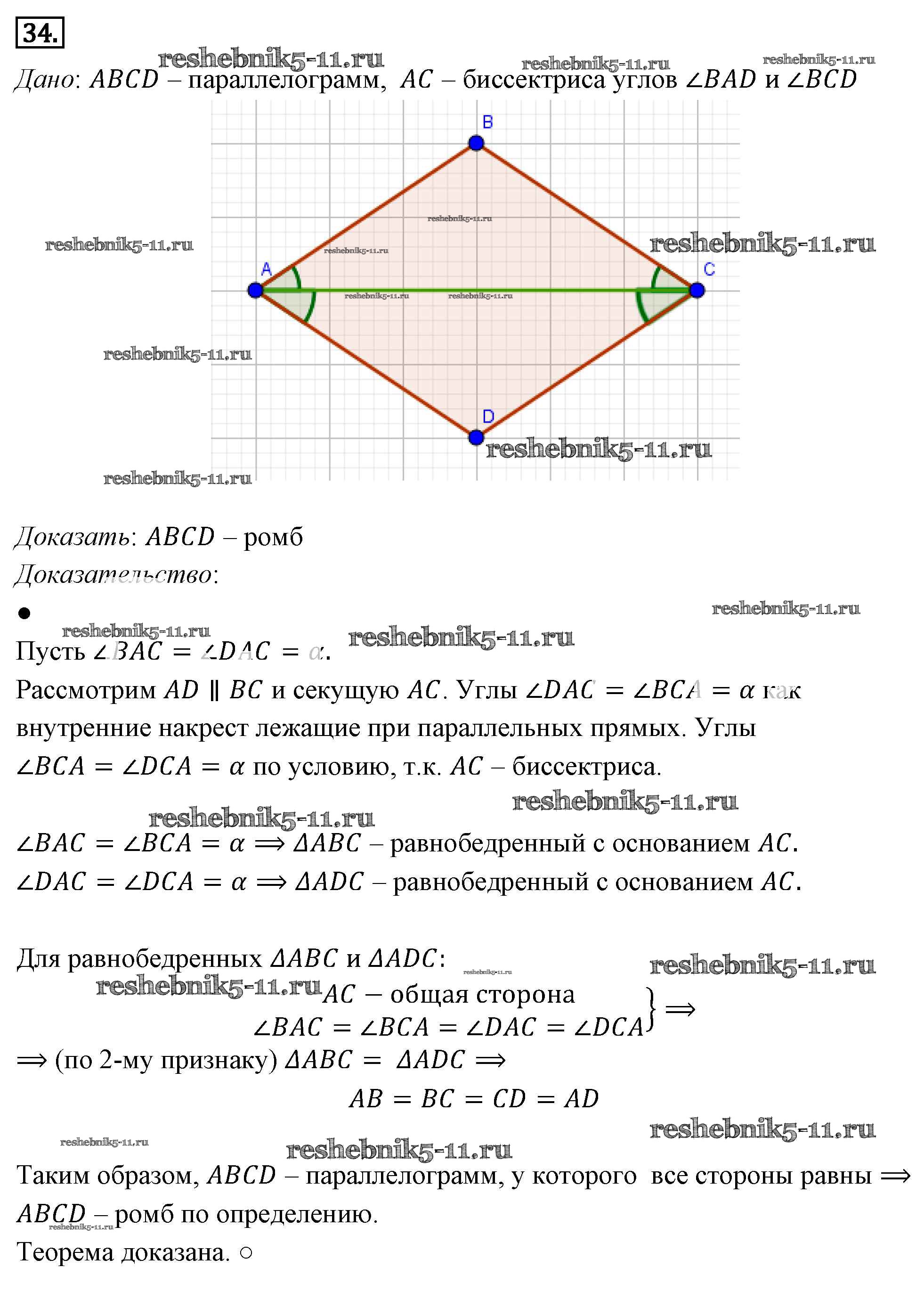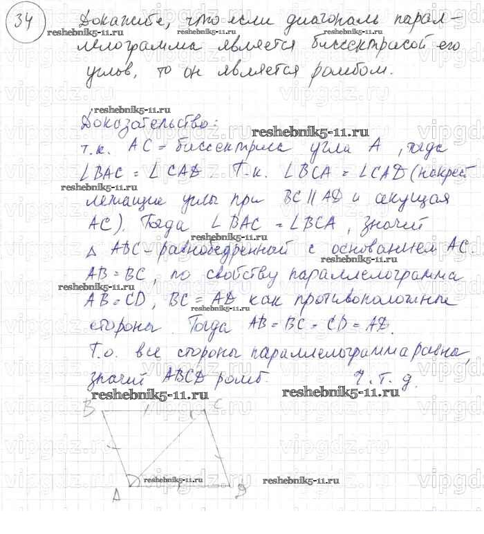 Готовая домашняя работа с ответами по Геометрии за 7, 8, 9 класс Погорелов Учебник Просвещение 2014 ФГОС - §6. Четырёхугольники 34