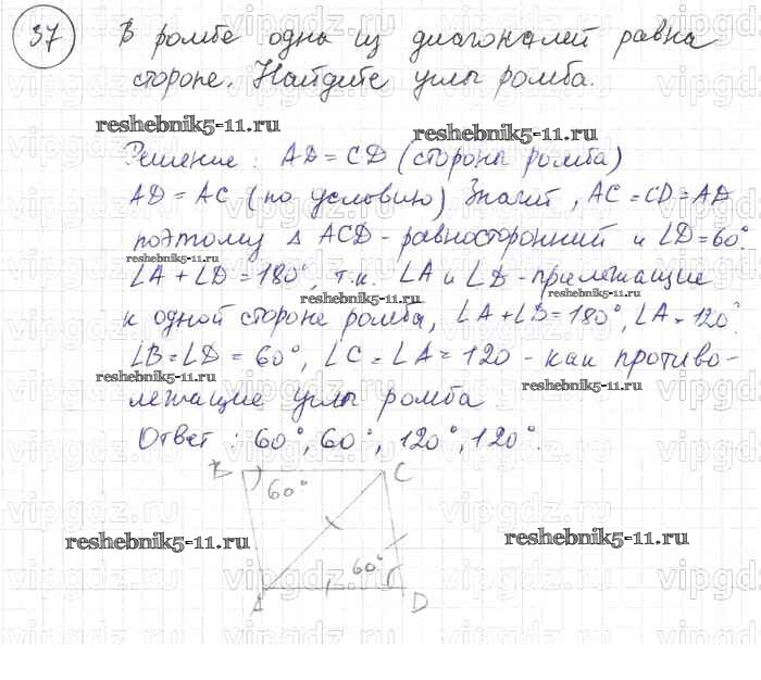 Готовая домашняя работа с ответами по Геометрии за 7, 8, 9 класс Погорелов Учебник Просвещение 2014 ФГОС - §6. Четырёхугольники 37