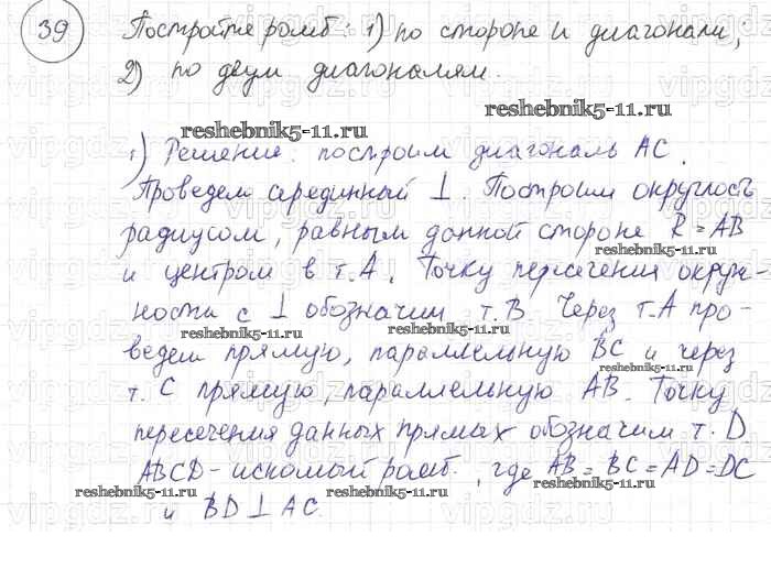 Готовая домашняя работа с ответами по Геометрии за 7, 8, 9 класс Погорелов Учебник Просвещение 2014 ФГОС - §6. Четырёхугольники 39