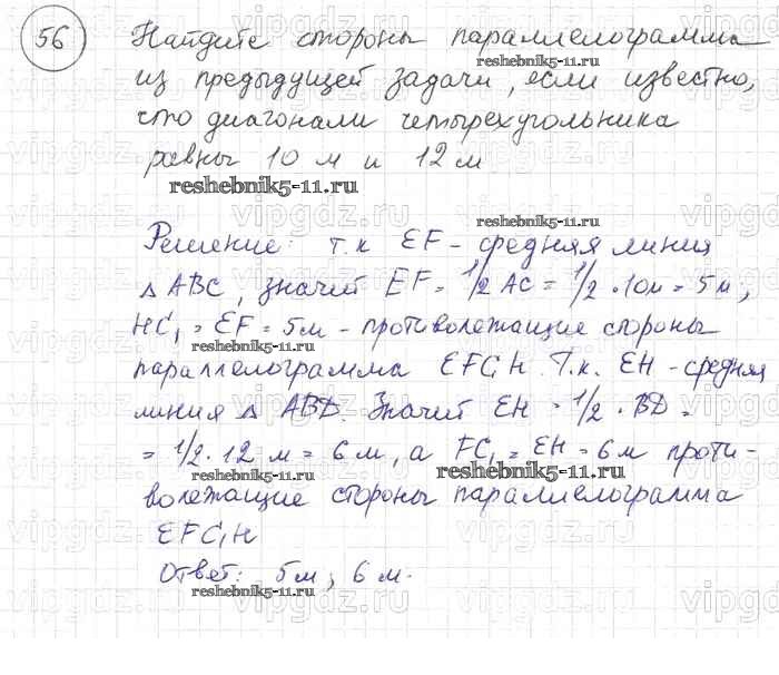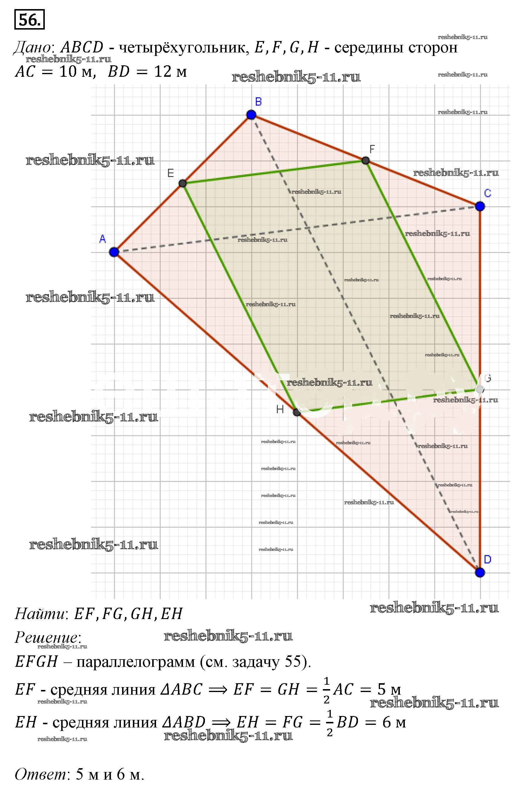 Готовая домашняя работа с ответами по Геометрии за 7, 8, 9 класс Погорелов Учебник Просвещение 2014 ФГОС - §6. Четырёхугольники 56