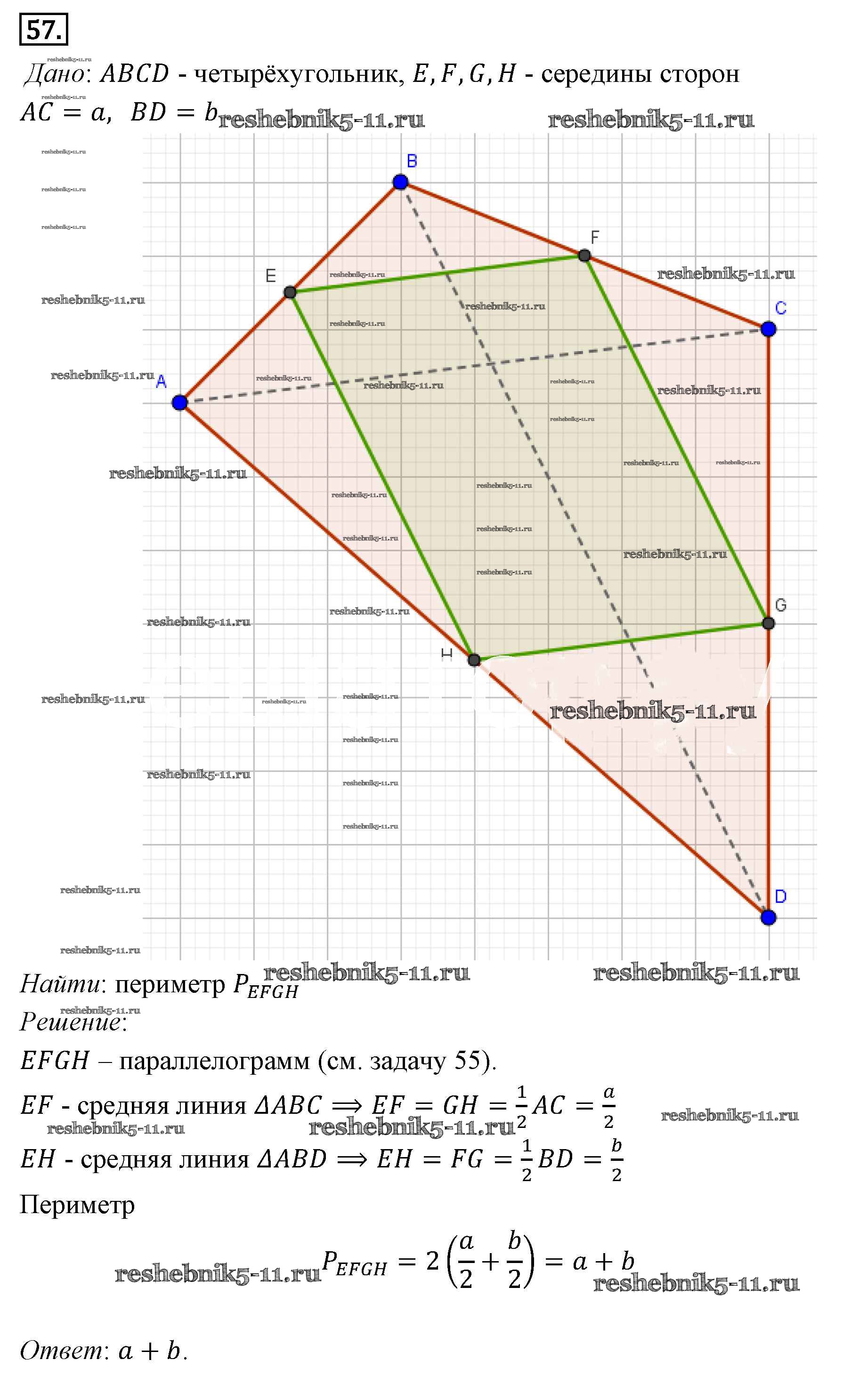 Готовая домашняя работа с ответами по Геометрии за 7, 8, 9 класс Погорелов Учебник Просвещение 2014 ФГОС - §6. Четырёхугольники 57