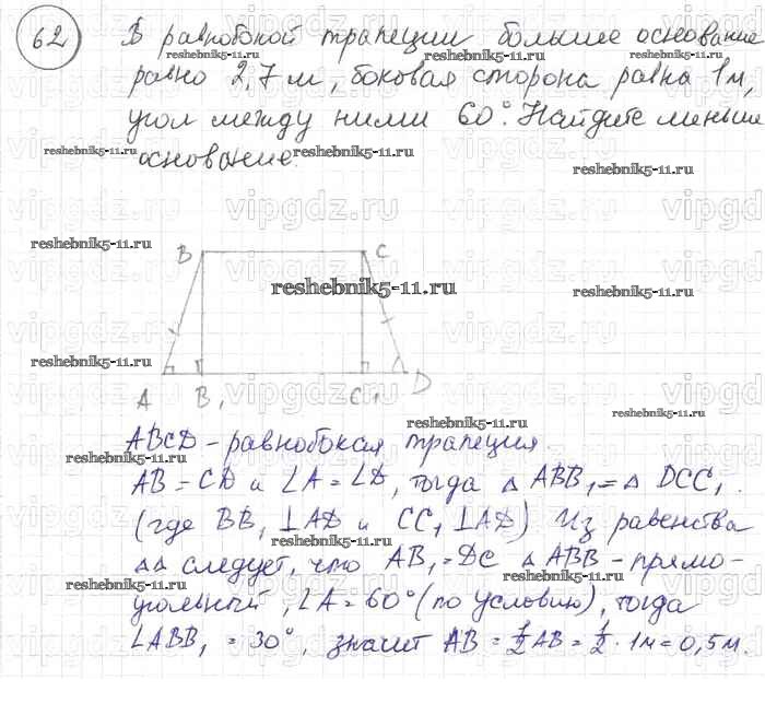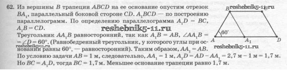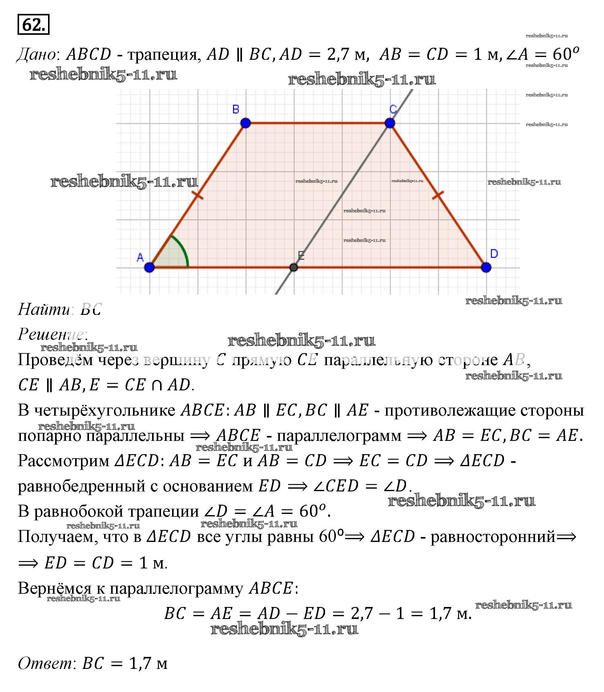 Готовая домашняя работа с ответами по Геометрии за 7, 8, 9 класс Погорелов Учебник Просвещение 2014 ФГОС - §6. Четырёхугольники 62