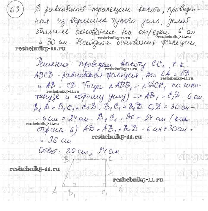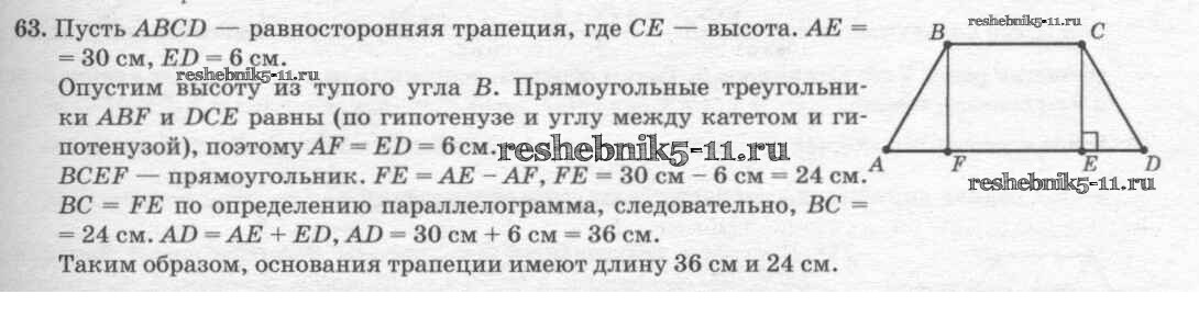 Готовая домашняя работа с ответами по Геометрии за 7, 8, 9 класс Погорелов Учебник Просвещение 2014 ФГОС - §6. Четырёхугольники 63