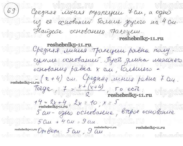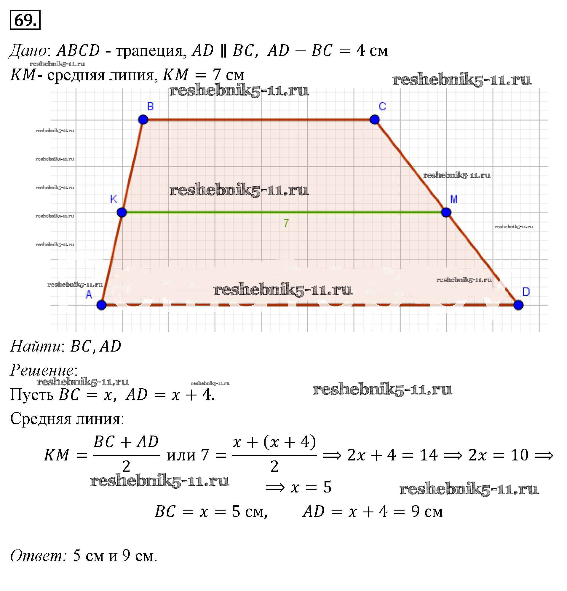 Готовая домашняя работа с ответами по Геометрии за 7, 8, 9 класс Погорелов Учебник Просвещение 2014 ФГОС - §6. Четырёхугольники 69