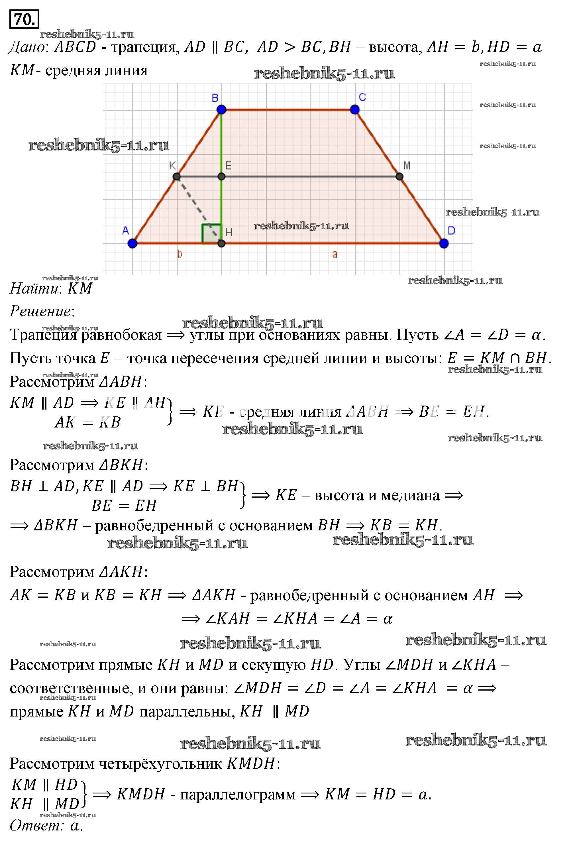 Готовая домашняя работа с ответами по Геометрии за 7, 8, 9 класс Погорелов Учебник Просвещение 2014 ФГОС - §6. Четырёхугольники 70
