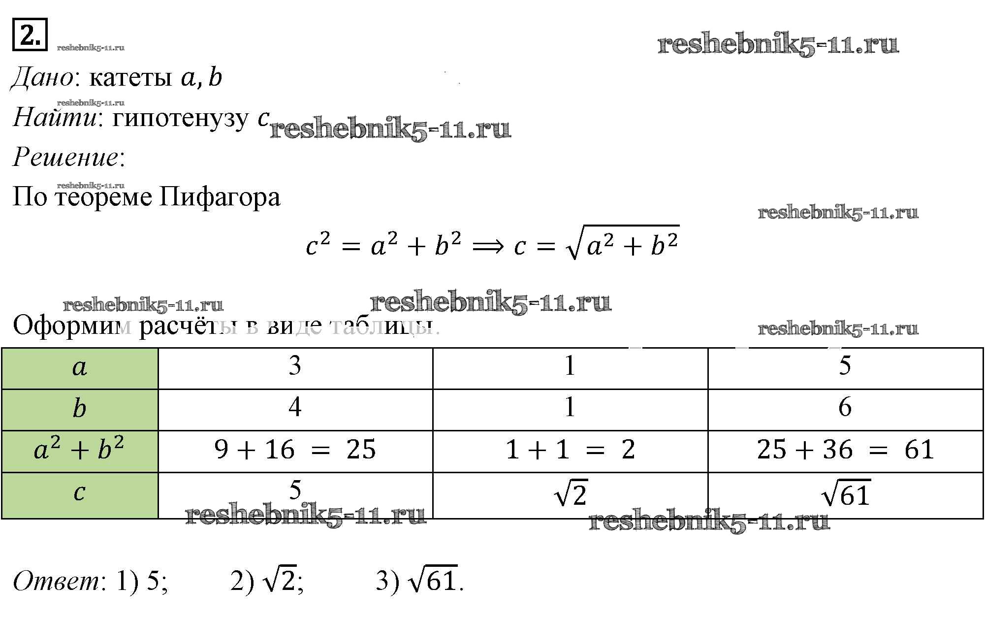 Готовая домашняя работа с ответами по Геометрии за 7, 8, 9 класс Погорелов Учебник Просвещение 2014 ФГОС - §7. Теорема Пифагора 2