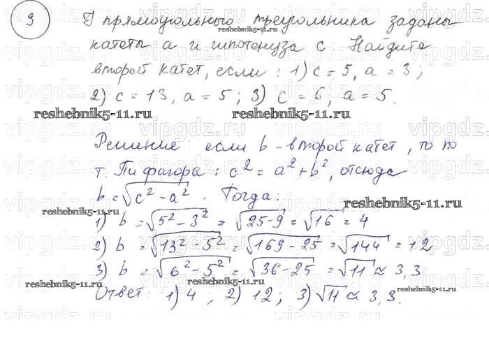 Готовая домашняя работа с ответами по Геометрии за 7, 8, 9 класс Погорелов Учебник Просвещение 2014 ФГОС - §7. Теорема Пифагора 3